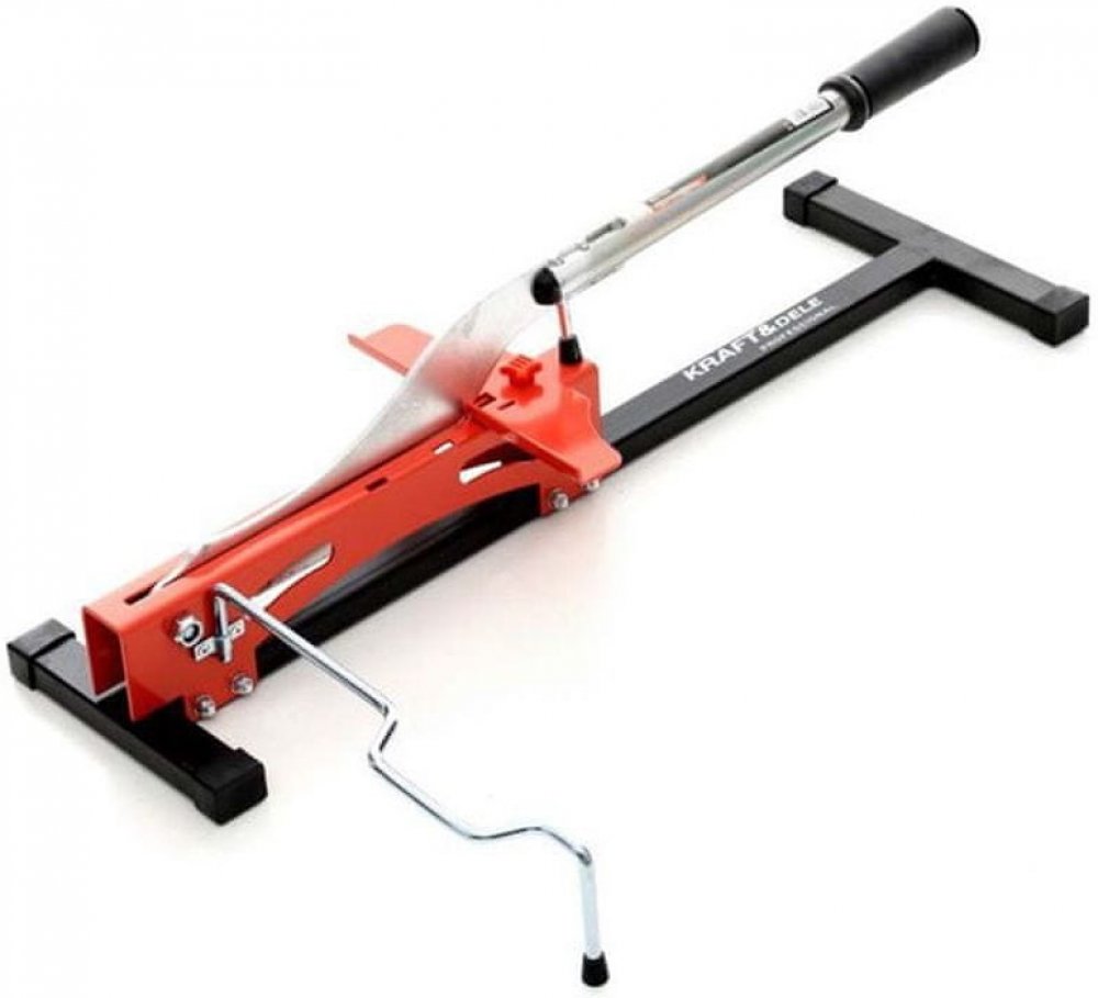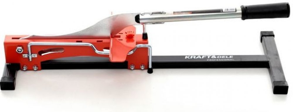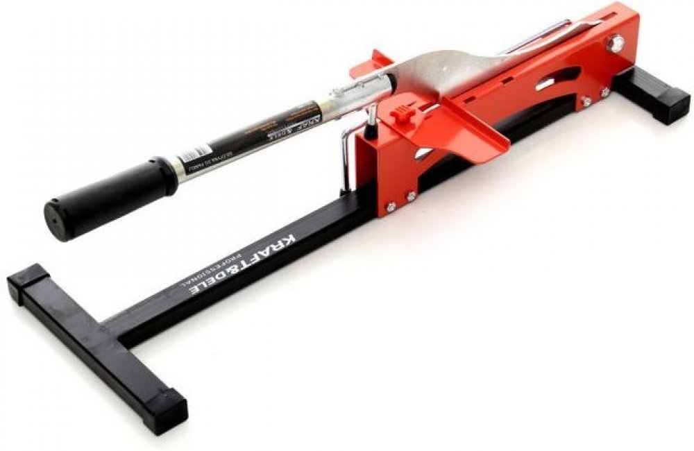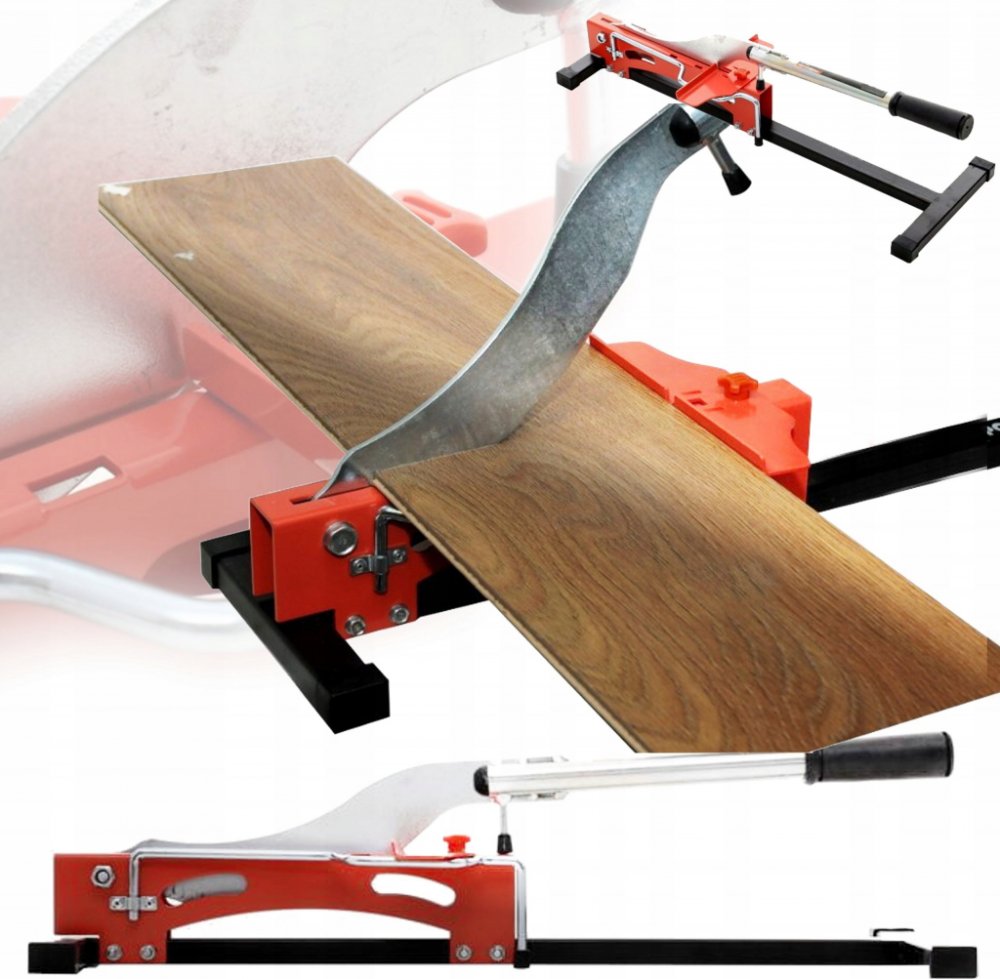 Gilotina pro řezání podlahových panelů. Zařízení vyrobené z kvalitních materiálů, nenahraditelné v každé garáži nebo dílně.