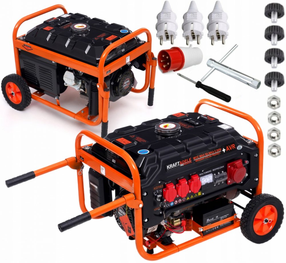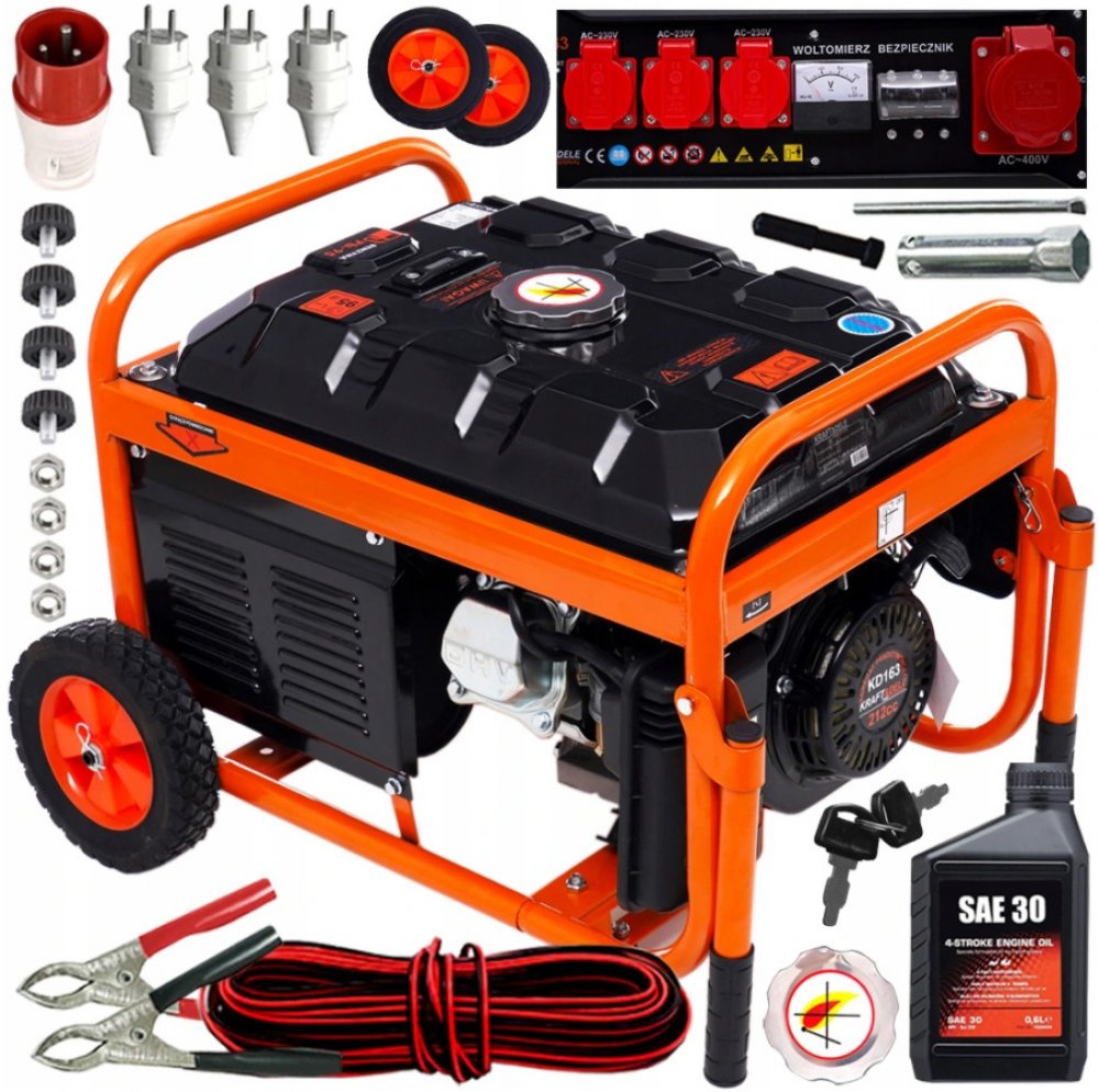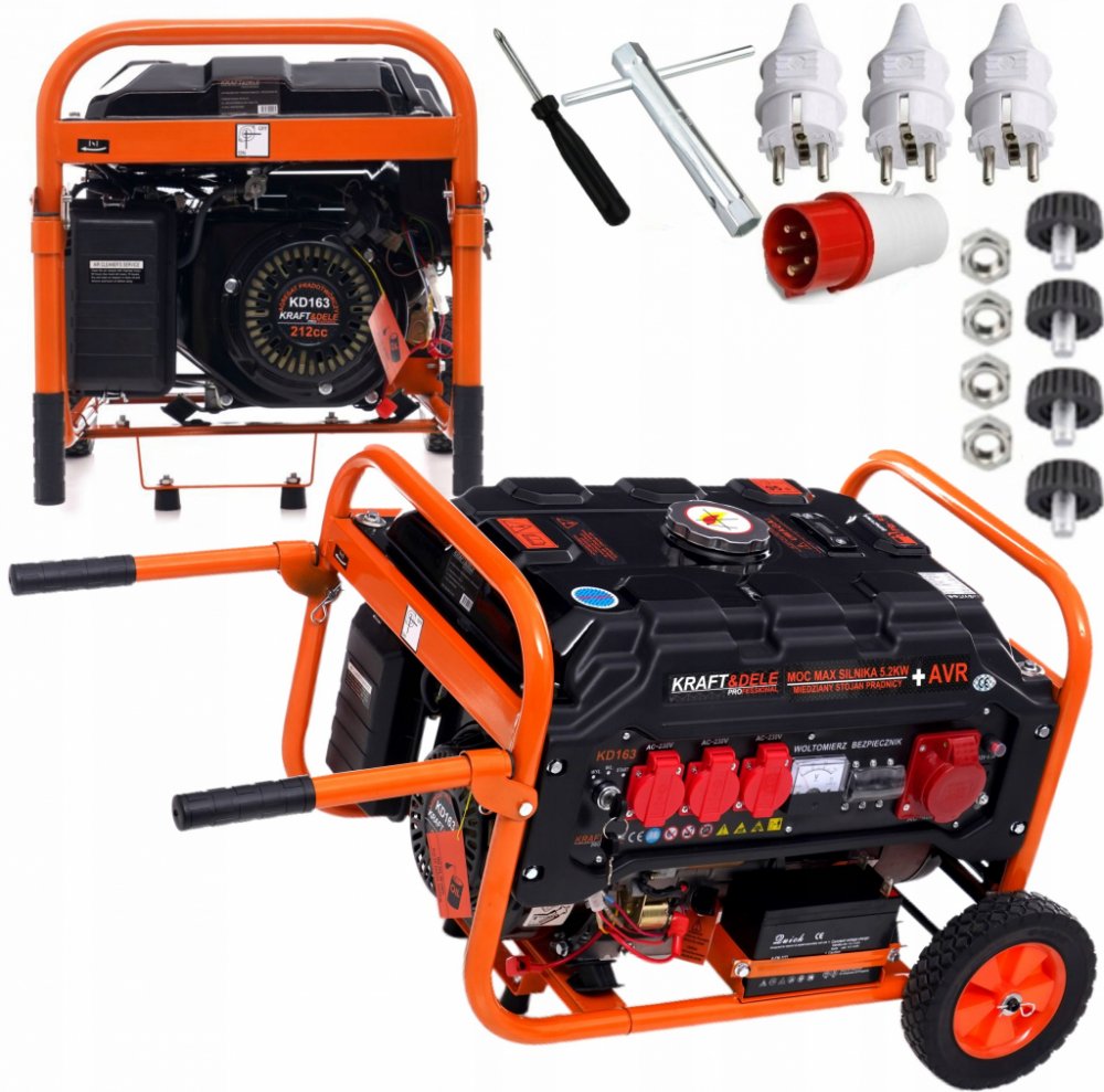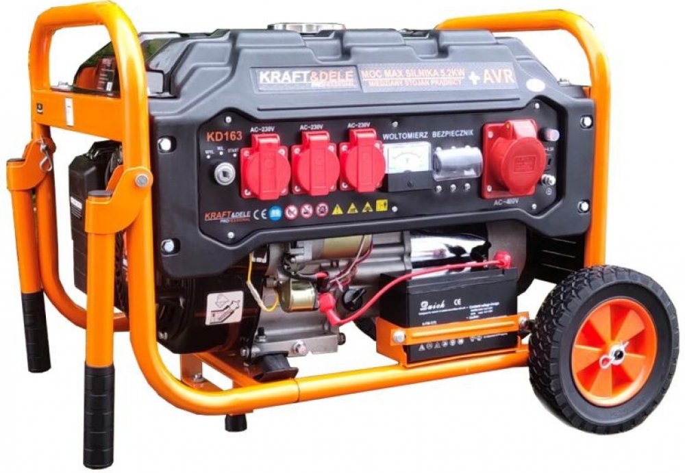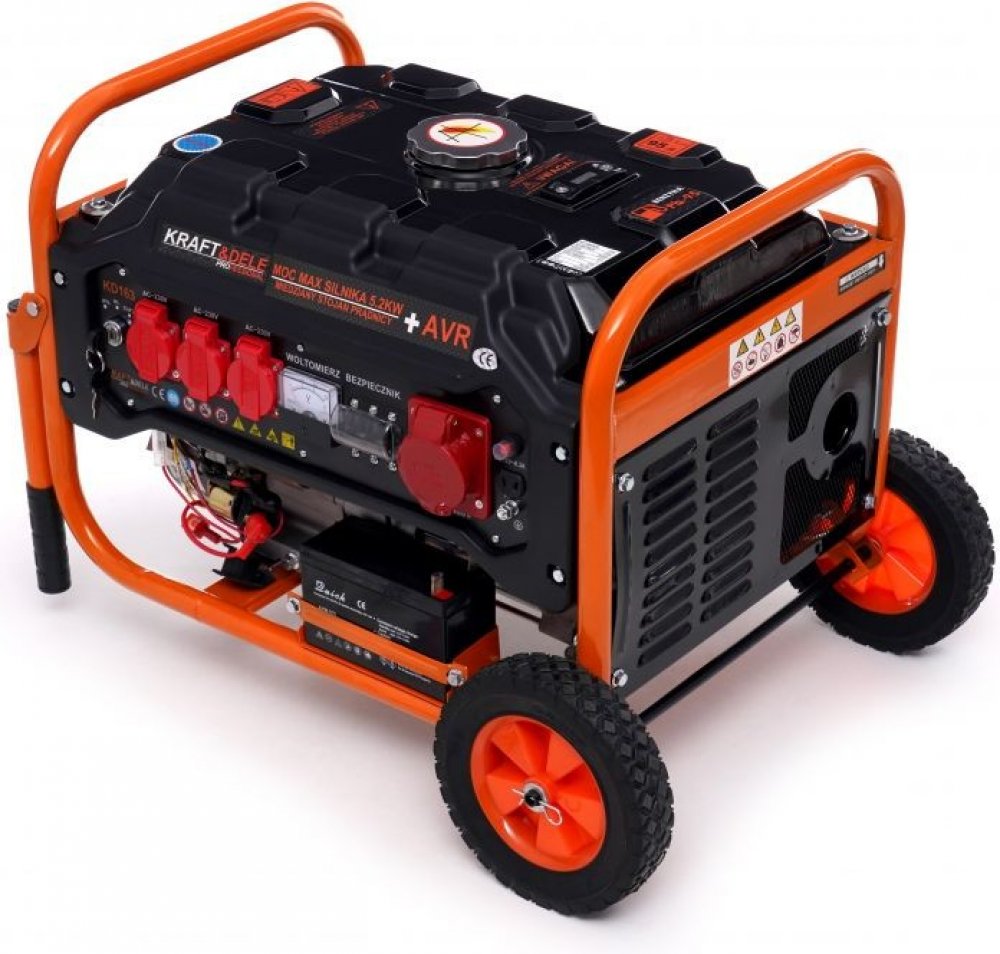 POPISPřenosný třífázový generátor s označením KD163 od Kraft & Dele je navržen pro výrobu elektřiny 220V-400V pomocí japonského čtyřdobého spalovacího motoru OHV s výkonem 7HP/5,2KW a jmenovitým výkonem generátoru 00W/h3.Tento model je vybaven automatickým spouštěním klíčem. Součástí je baterie, která napájí startér. Už žádné tahán...