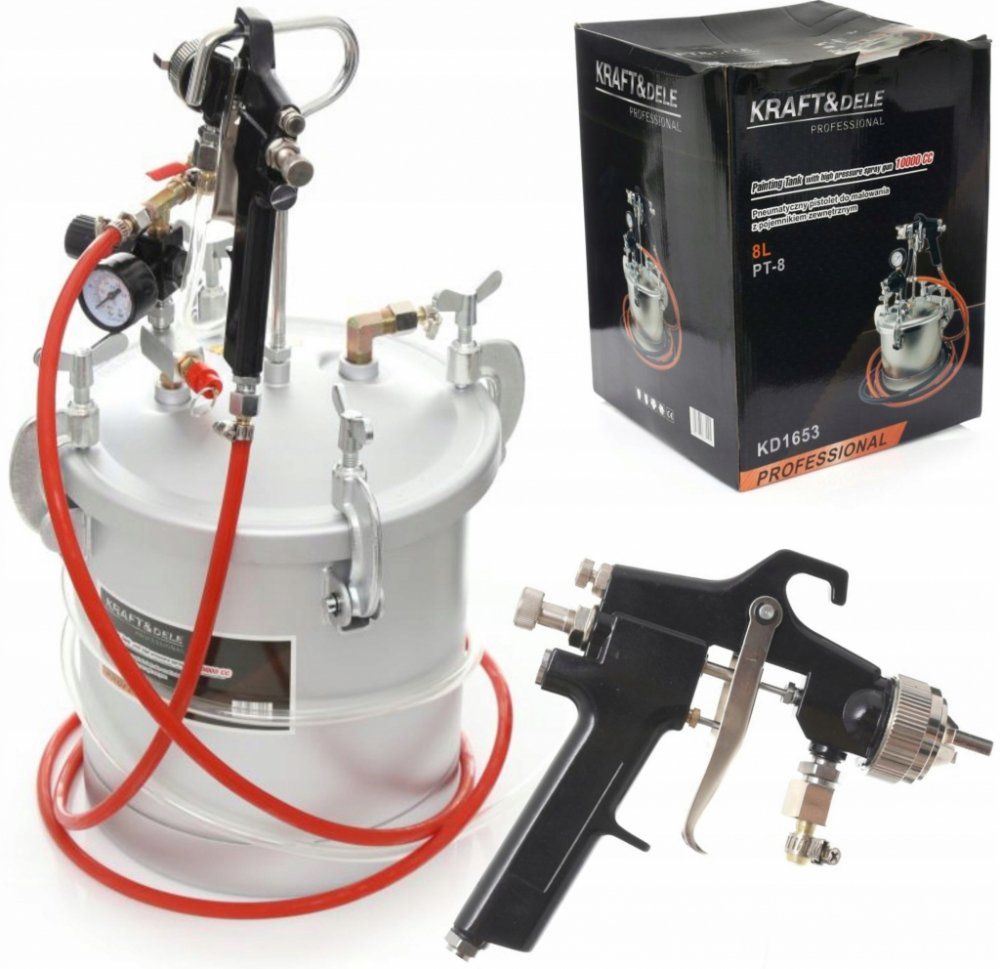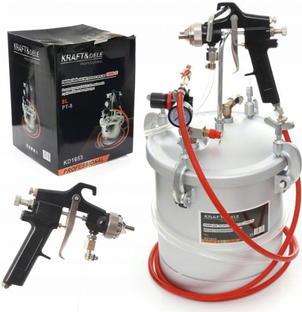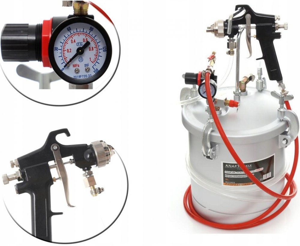 Pneumatická lakovací pistole s externí nádrží 8 litrů je ideální sada pro venkovní použití a velké plochy