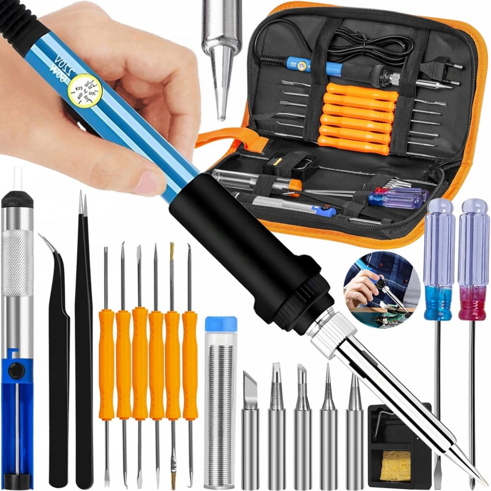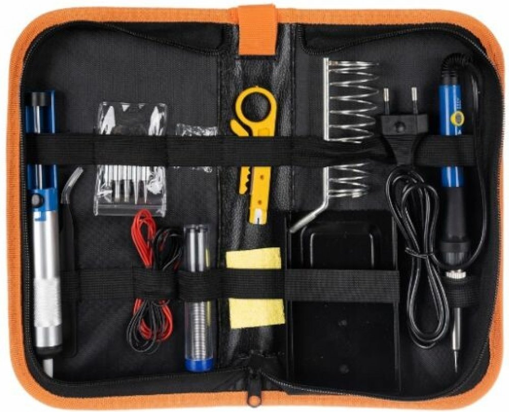 Jedná se o XL set, ve kterém najdete pájku a pájecí příslušenství jako je cín, vyměnitelné hroty, pinzety a mnoho dalších nástrojů