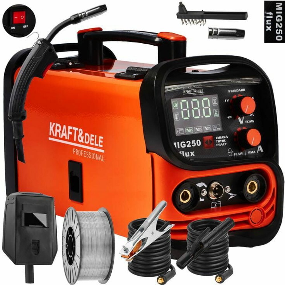 Svářečka značky Kraft&Dele model KD1875 je poloautomat s univerzálním využitím, určený ke svařování nerezové oceli, slitinových ocelí, uhlíkové oceli, mědi a dalších neželezných kovů. Vyznačuje se jednofázovým napájením.