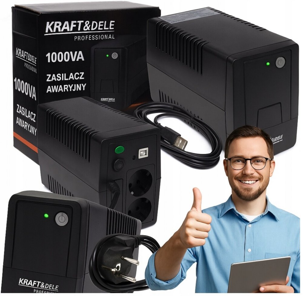 Záložní napájecí zdroj UPS 1000VA LED KRAFT&DELE