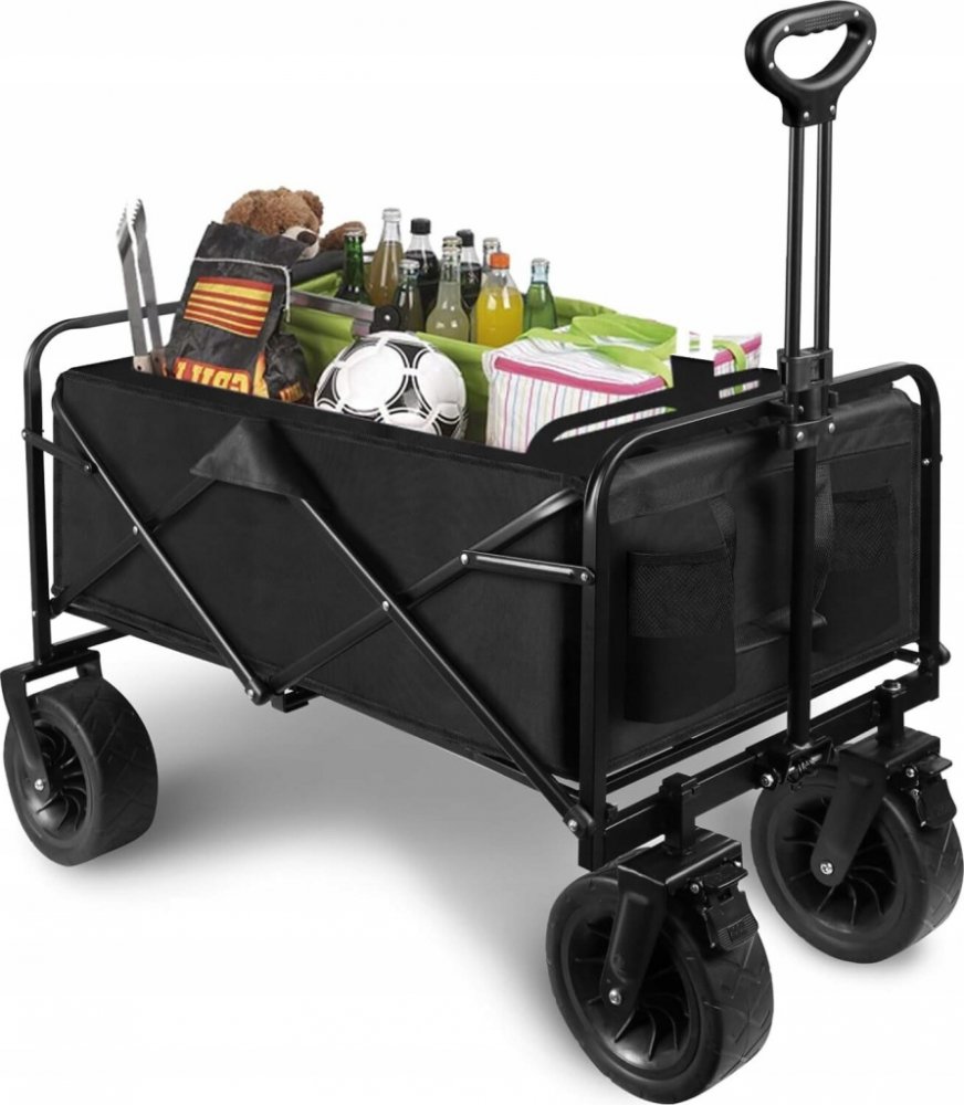 Rám vozíku je vyroben z kvalitní oceli a ergonomická skládací rukojeť umožňuje nastavit výšku dle potřeby. Rukojeť je potažena gumou pro pohodlné držení. Vozík má zesílené dno a praktický potah, zatímco přední kola jsou opatřena brzdou pro zajištění přepravovaného nákladu.