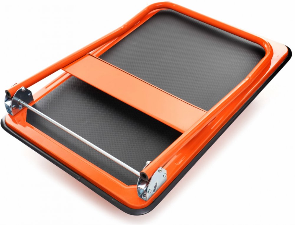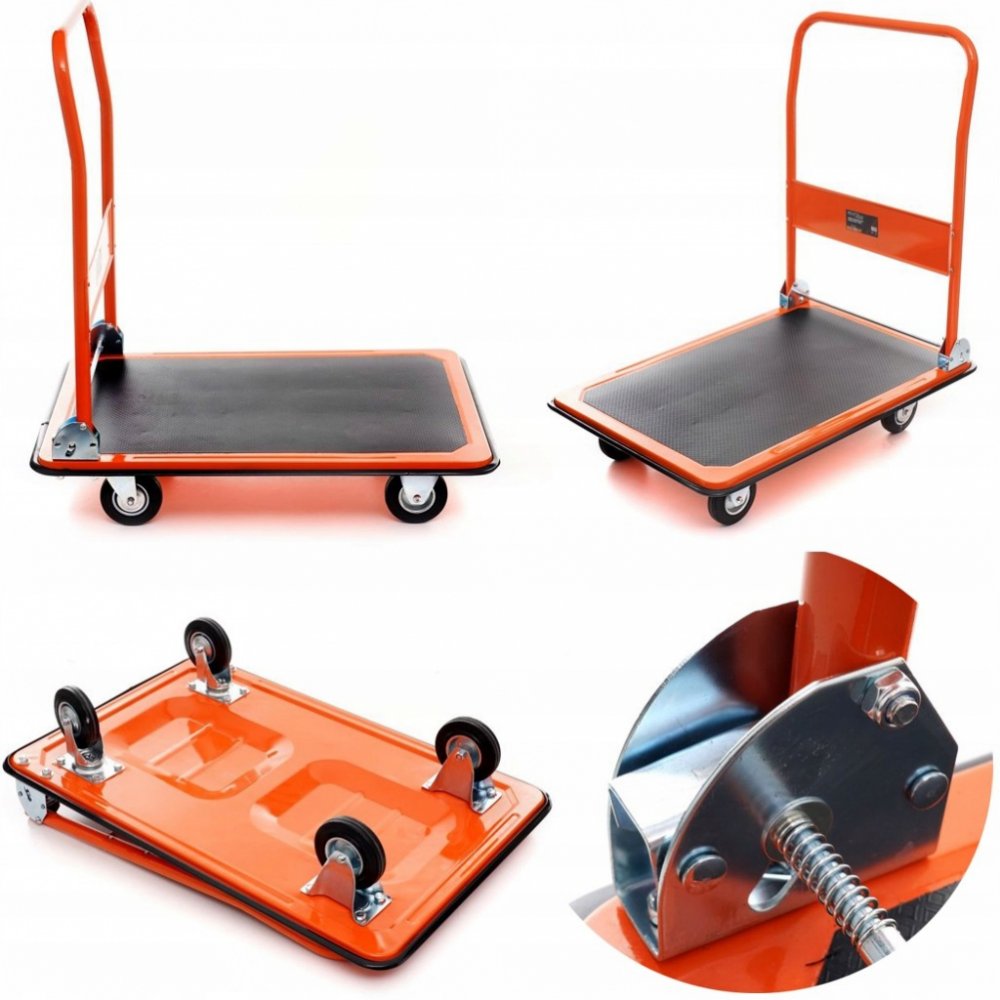 Vozík je vybaven protiskluzovou plošinou a na okrajích je opatřen ochrannou gumou pro tlumení nárazů. Díky skládací rukojeti zabírá po složení velmi málo místa.