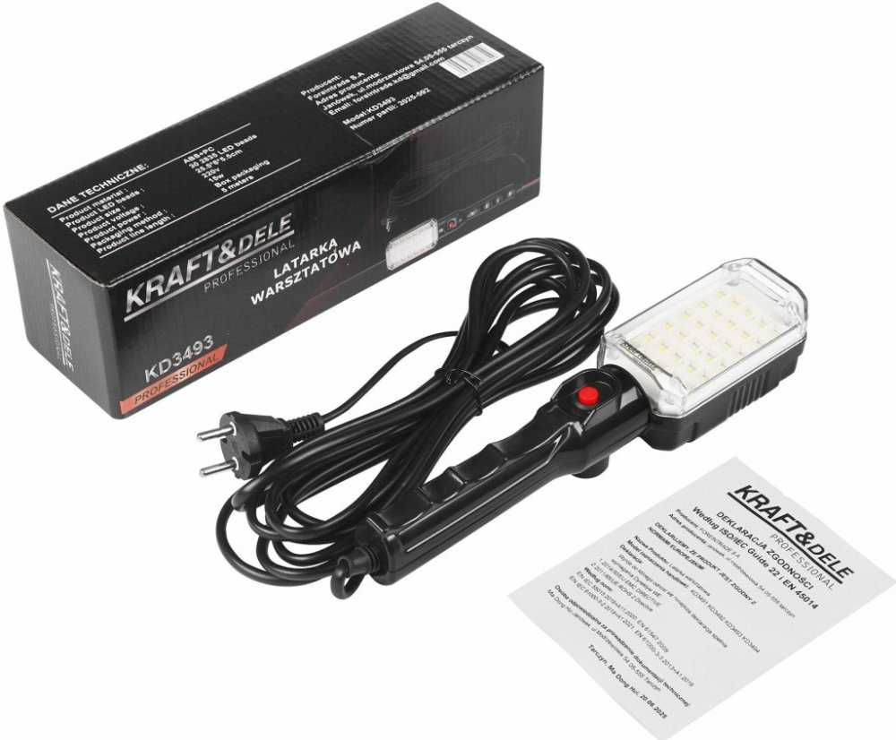 Kraft&Dele KD3493 je ideální řešení pro osvětlení v dílně, garáži nebo na stavbě. Díky 15W příkonu a 30 LED diodám 2835 poskytuje silné a rovnoměrné světlo za všech pracovních podmínek. Dlouhý 5 metrů kabel zajistí volnost pohybu a umožní optimální umístění svítidla. Praktické doplňky jako háček pro zavěšení a silný zadní magnet umožňují snadné a rychlé upevnění k různým povrchům. Odolné tělo z ABS a PC materiálu navyšuje odolnost proti mechanickému poškození a prodlužuje životnost lampy.