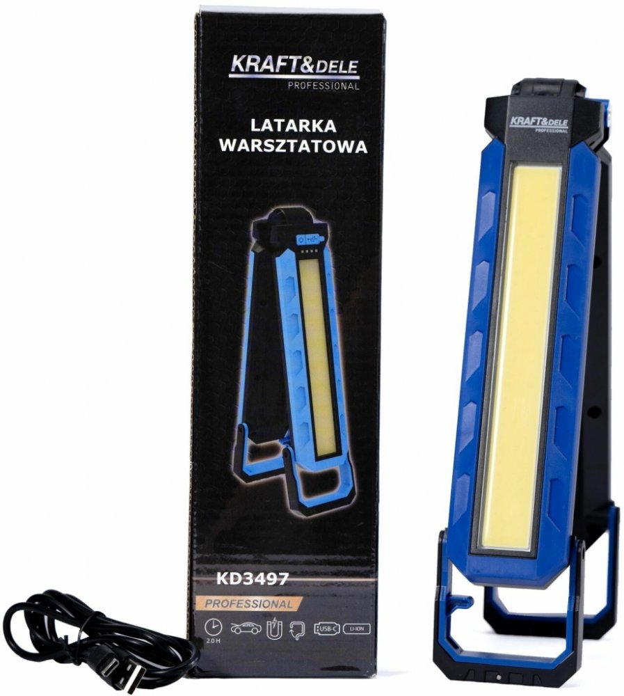 Latarka pracovní LED KD3497 značky Kraft&Dele je ideálním pomocníkem pro náročné osvětlení v dílně, na staveništi nebo při opravách vozidel. Díky vysokému výkonu 1100 lumenů a praktické flexibilní konstrukci nabízí maximální pohodlí a variabilitu použití. Magnetický otočný držák, otočný hák a možnost stabilní montáže na stativ z ní dělají všestranný nástroj připravený pro každou situaci. Napájení zajišťují dva vysoce kapacitní akumulátory 4000 mAh s moderním rychlým nabíjením přes USB-C.