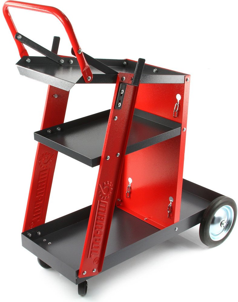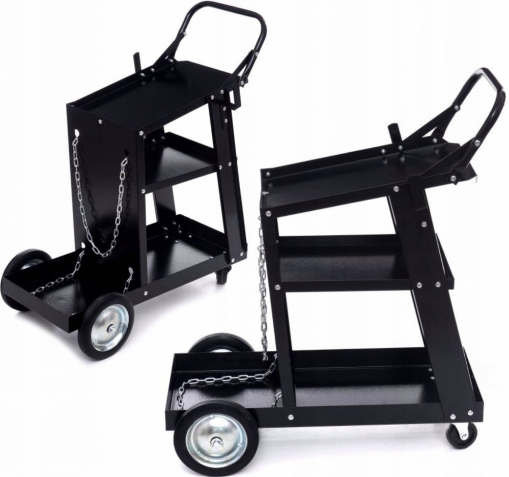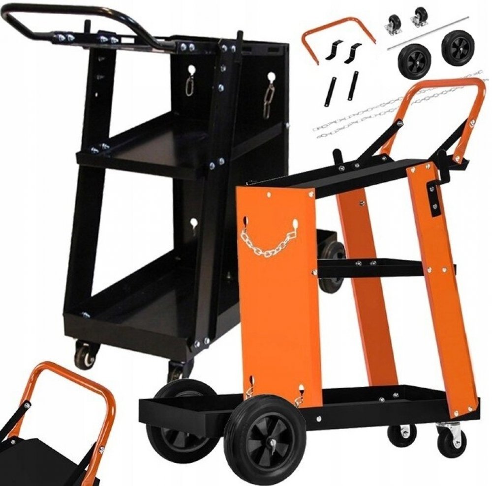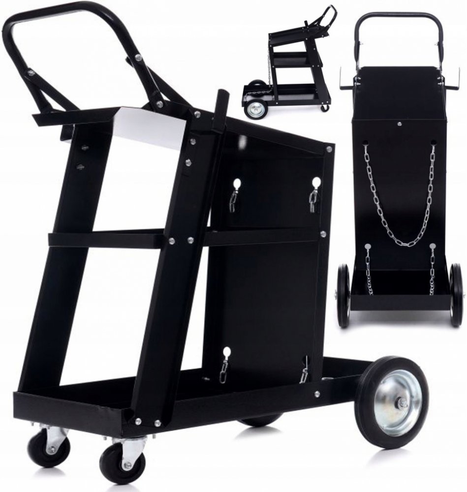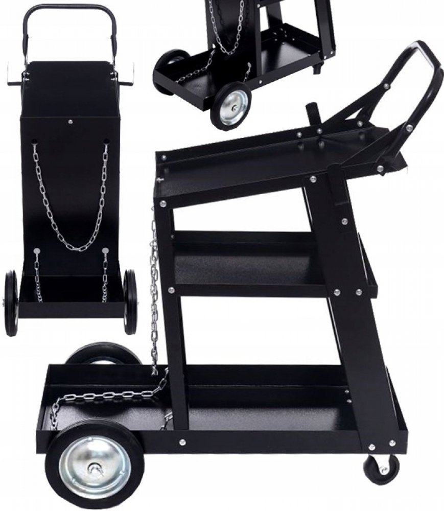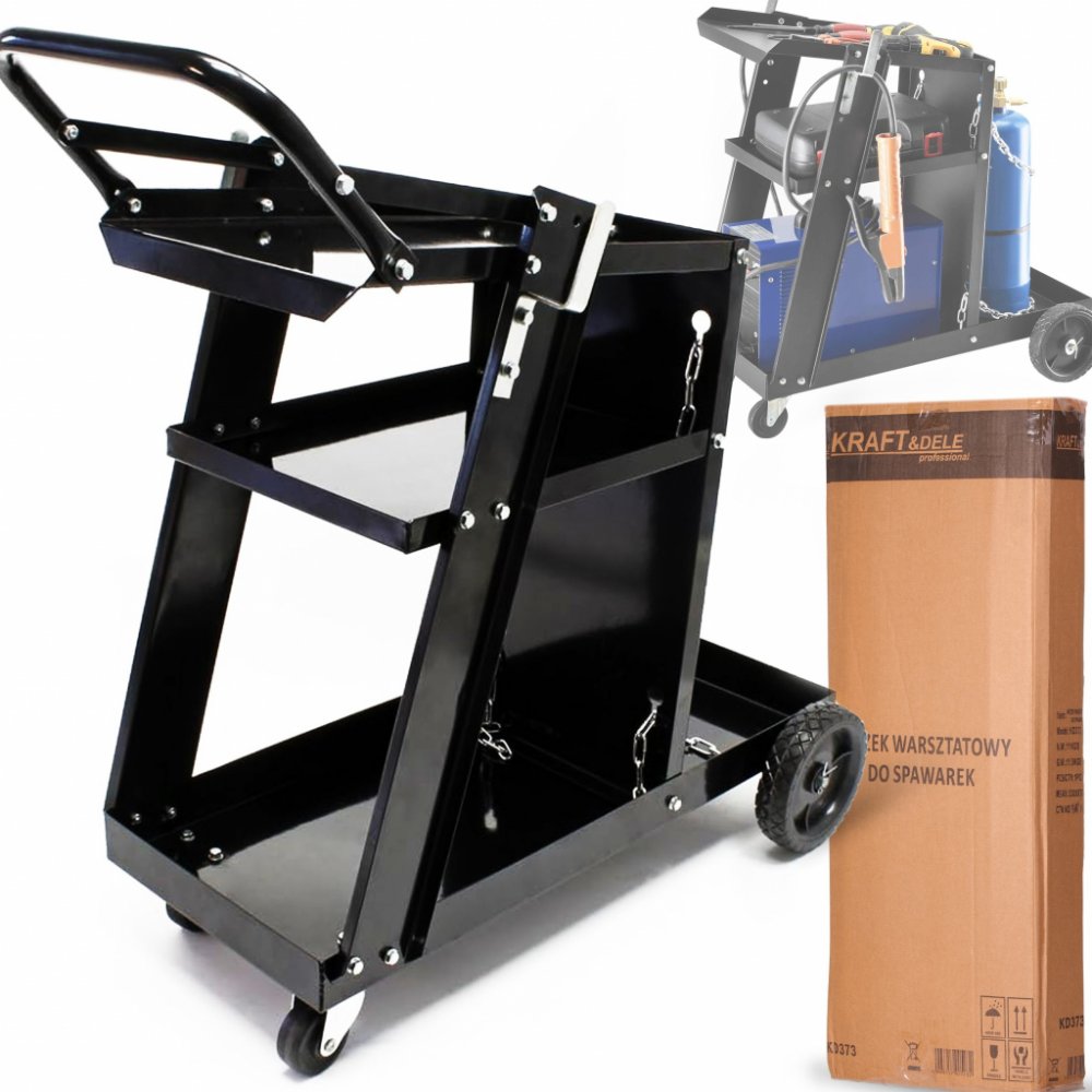Profesionální vozík na svářečku značky KRAFT&DELE s nosností 75kg, je ideální na přepravu svařovacích souprav a pro další použití v dílnách. Je vybaven dvěma policemi a prodlouženou horní policí. Díky pevné a odolné konstrukci z nejkvalitnější oceli umožňuje práci s MIG/TIG nebo s plazmovými svařovacími soupravami. Manévrování usnadňují vetší kola vzadu a menší vpředu.