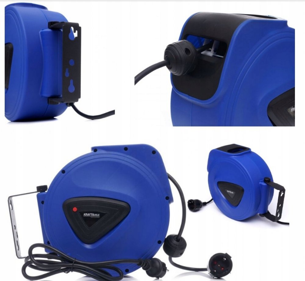 Samonavíjecí prodlužovací kabel 15 m je perfektním vybavením každé domácnosti, dílny i zahrady. Slouží k připojení domácích elektrických zařízení, jako je elektrická sekačka na trávu, vysavač do auta a mnoho dalších. Pevné plastové pouzdro chrání kabel, má pojistku proti přetížení, dětskou pojistku a automatický zámek kabelu. Buben lze namontovat na stěnu nebo strop.