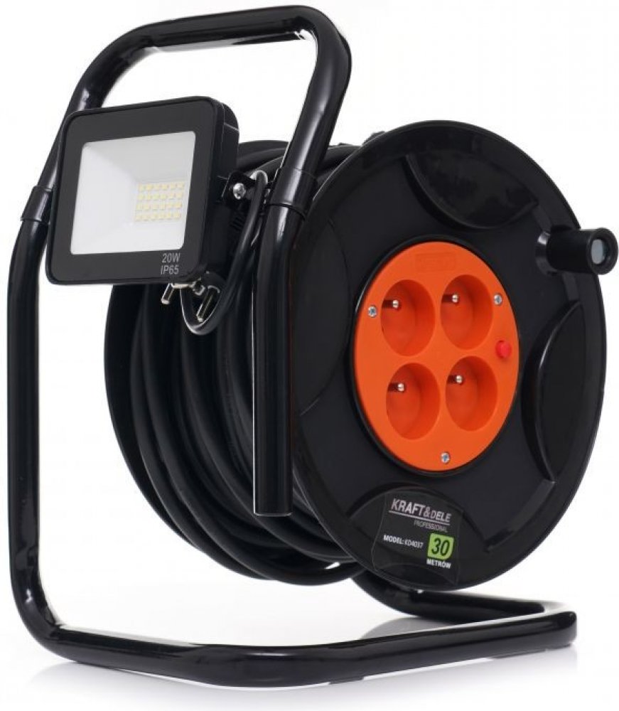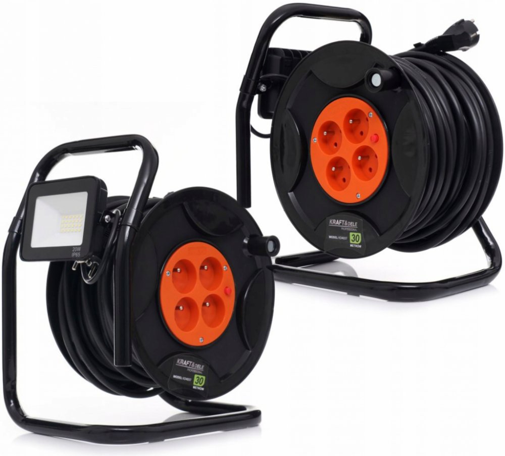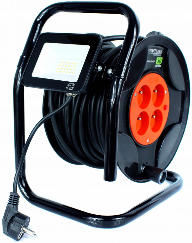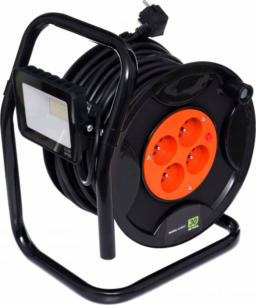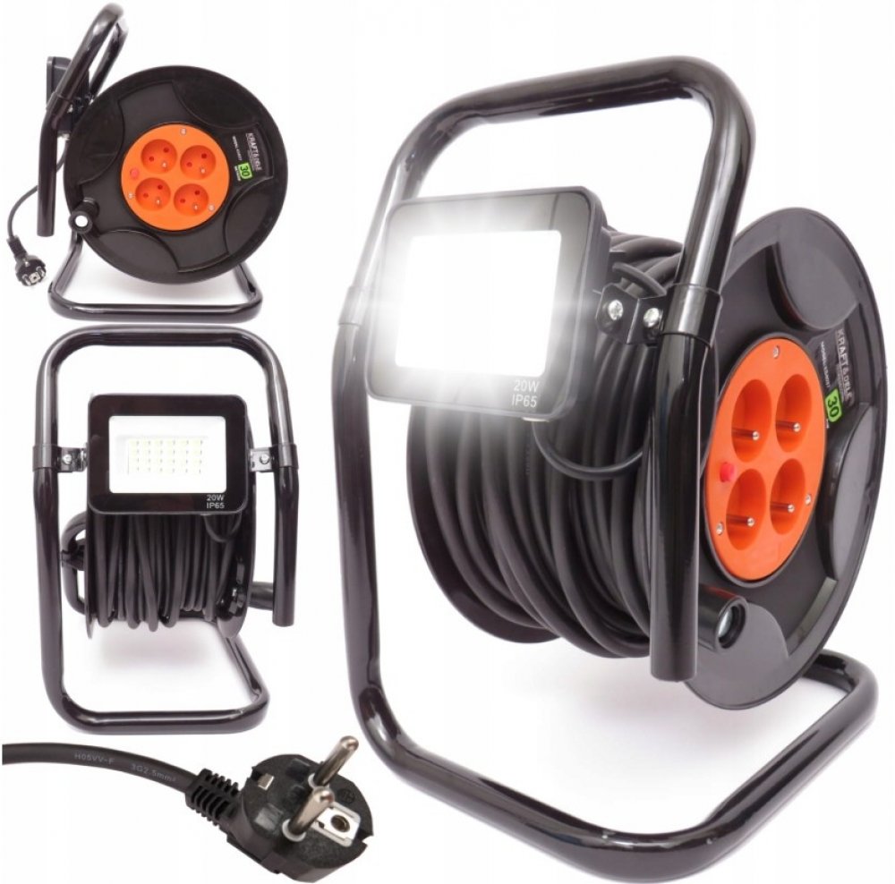 Délka 30 metrů - Zajišťuje maximální dosah i na větší vzdálenosti bez ztráty výkonu.Čtyři zásuvky s kapacitou 250V / 6A - Umožňuje současné připojení více zařízení, což je skvělé pro víceúlohové projekty v exteriéru.Integrované LED osvětlení 20W - Poskytuje jasné světlo i za šera či tmy, s krytím IP65 pro odolnost vůči nepříznivým povětrnostním podmínkám.Ergonomická rukojeť - Perfektní pro snadný transport a kompaktní skladování.Stabilní a odolná konstrukce - Zajišťuje dlouhou životnost proti běžnému opotřebení.Nízká váha 3,5 kg - Umožňuje jednoduchou manipulaci, aniž by vás zbytečně zatížila.