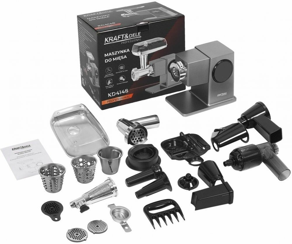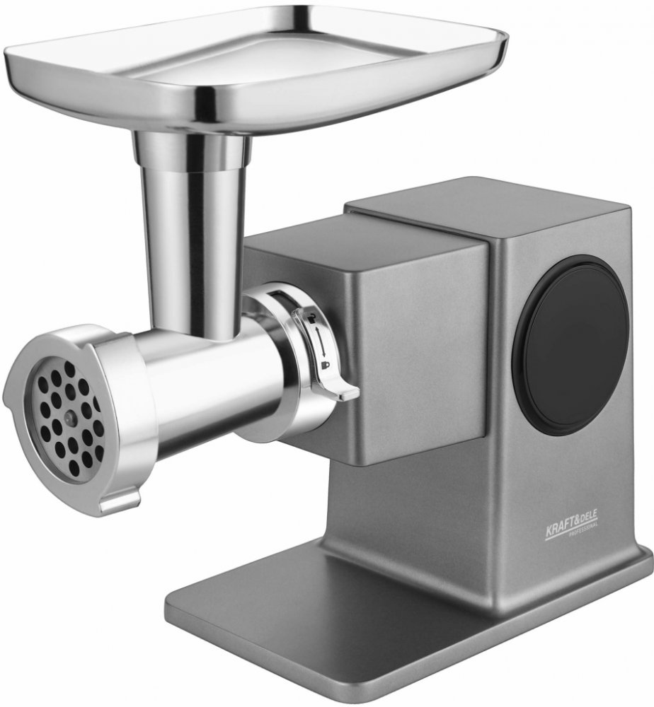 Model Kraft&Dele KD4148 je výkonný a multifunkční mlýnek na maso určený pro domácí i poloprofesionální použití. Díky výkonu 2500 W a planetárnímu mechanismu zajišťuje rovnoměrné a efektivní mletí s kapacitou až 4 kg masa za minutu. Je vybaven dotykovým displejem s regulací rychlosti, který umožňuje přizpůsobit provoz podle typu masa a požadované jemnosti mletí.