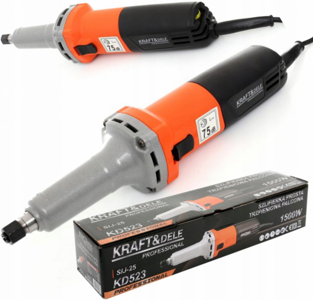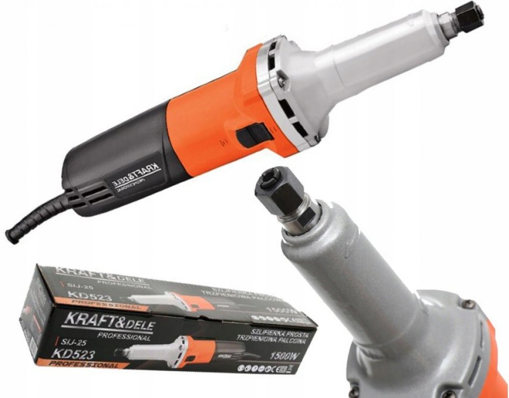 Přímá bruska Kraft & Dele je profesionální nástroj s výkonem 1500 W a upínací kleštinou 6 mm