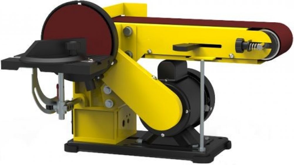 Modul diskové brusky má naklápěcí pracovní stůl, umožňující práci kolmo na brusný disk (v rozmezí 0-45 stupňů), zatímco stůl pásové brusky umožňuje práci jak ve vodorovné, tak i ve svislé poloze (v rozmezí 0-90 stupňů). Stroj umožňuje broušení dřevěných dílů podélně, příčně i šikmo. Stůl je vyroben z litiny, což zajišťuje stabilitu konstrukce a odolnost vůči deformaci pod tlakem. Povrch stolu je frézován pro lepší přilnavost zpracovávaného materiálu.