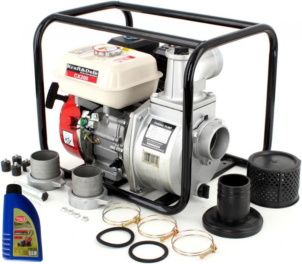 Motorové benzínové čerpadlo 3″ 6,5HP pro čerpání čisté a špinavé vody. Spalovací čerpadlo se používá k zavlažování, čerpání vody ze zatopených prostor a místností a všech druhů vodních nádrží jako jsou bazény, rybníky, rybníky, odvodňovací příkopy, stavební výkopy atd. Čerpadlo je vhodné pro čerpání čisté i špinavé vody. Vodní čerpadlo splňuje přísné bezpečnostní normy. Čerpadlo je vybaveno spoleh...