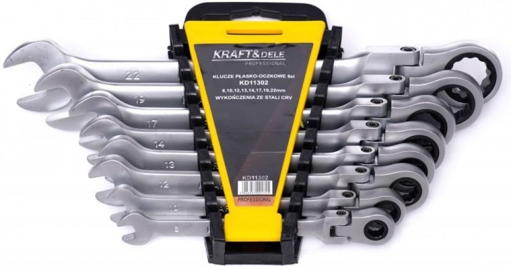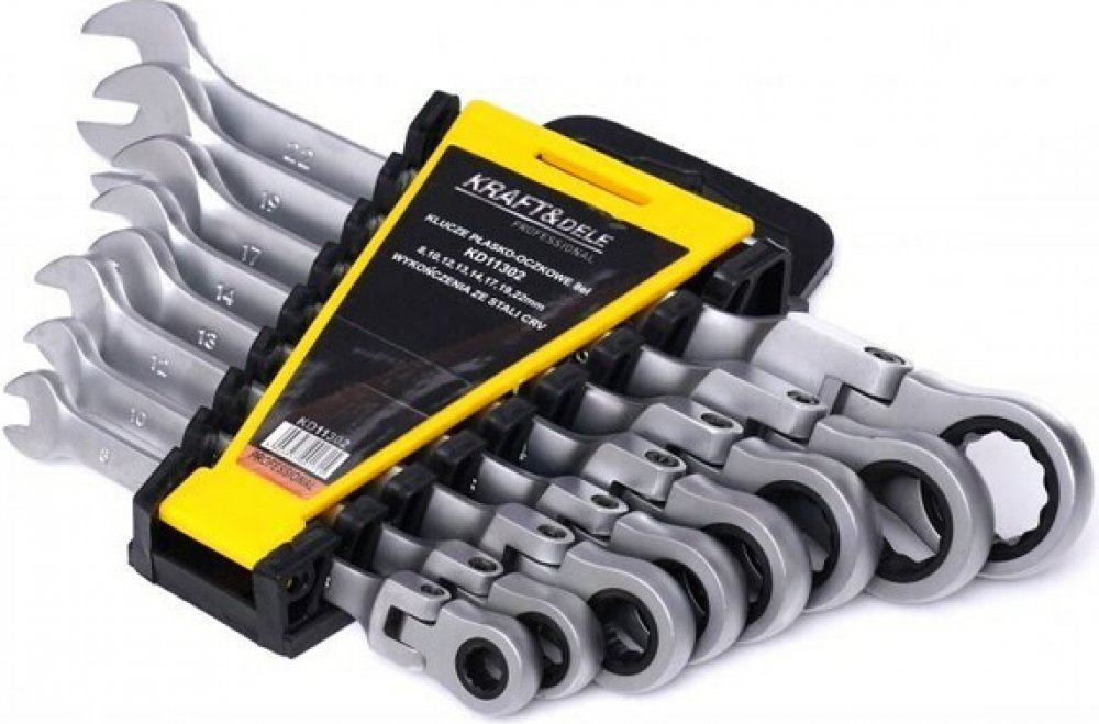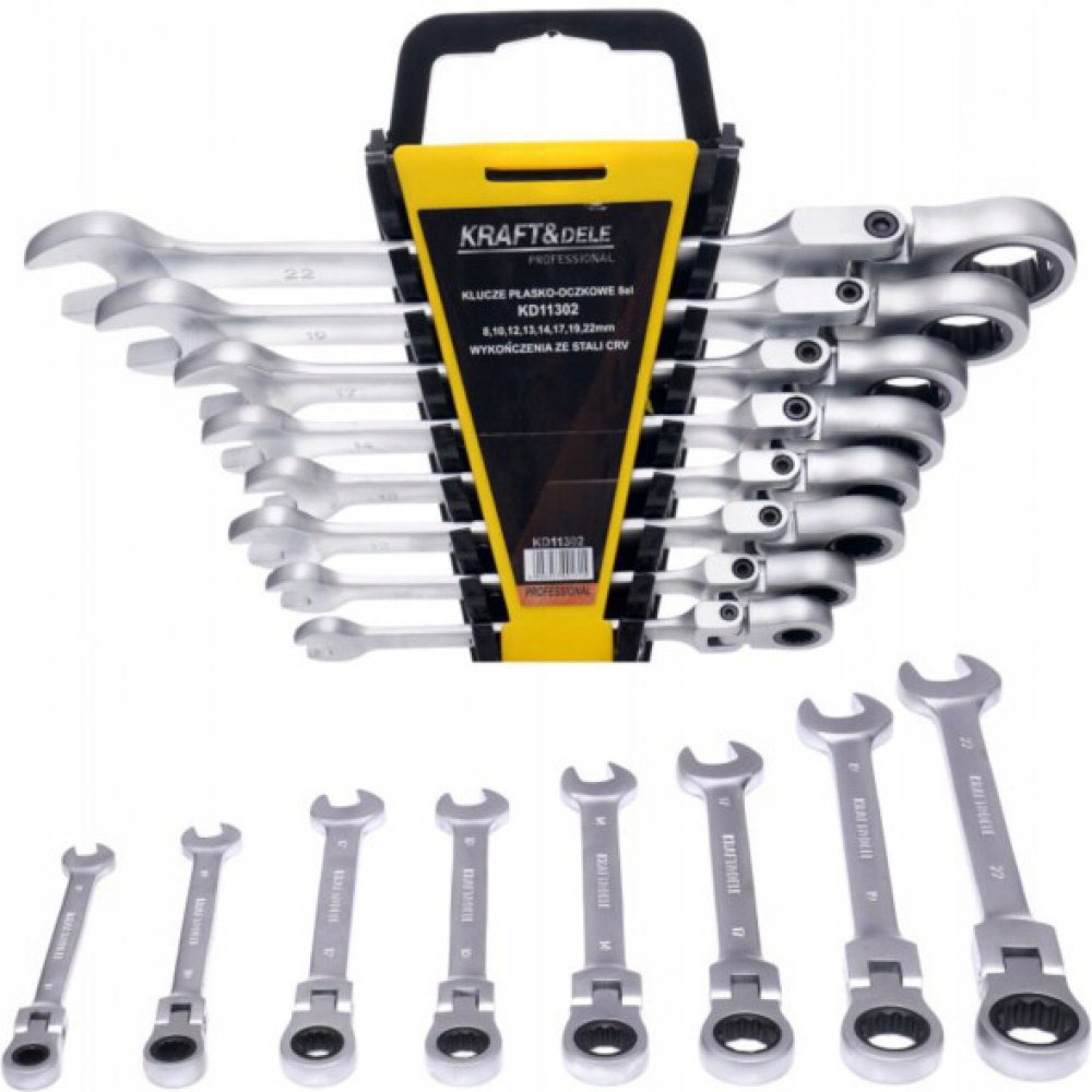 Sada 8 ks kombinovaných klíčů plochých s kloubem a ráčnou značky Kraft&Dele