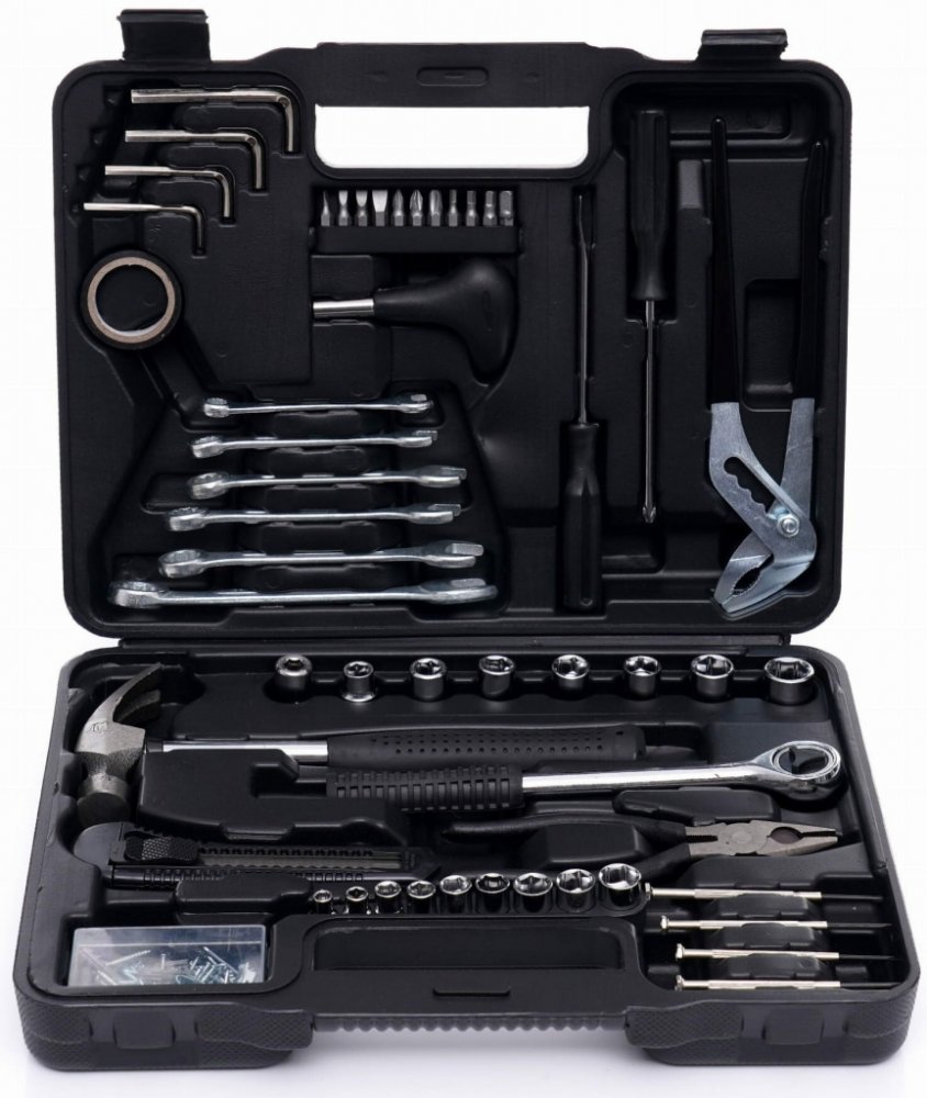 Hmotnost zestawu ok. 6 kg SKŁAD ZESTAWU ✅ Klucze HEX: 3, 4, 5, 6 mm ✅ Klucze płaskooczkowe: 8", 10", 12", 13", 14", 15" ✅ Nasadki 1/4": 5 – 13 mm ✅ Nasadki 3/8": 10 – 17 mm ✅ Kombinerki 6" ✅ Bity płaskie 25 mm: 4, 5, 6, 7 ✅ Bity Philips: PH1, PH2, PH3 ✅ Bity Pozi: PZ1, PZ2, PZ3 ✅ Wkrętaki 5,5 x 10 mm: płaski i krzyżakowy ✅ Wkrętaki precyzyjne: płaski i krzyżakowy ✅ Nóż uniwersalny ✅ Klucz grzechotkowy 3/8" ✅ Taśma izolacyjna ✅ 90 ks. gwoździ i kołków ✅ Młotek do gwoździ 8" ✅ Wkrętak do bitów ✅ Klucz nastawny do rur 9" ✅ Adapter do nasadek 1/4" ✅ Wytrzymała walizka transportowa