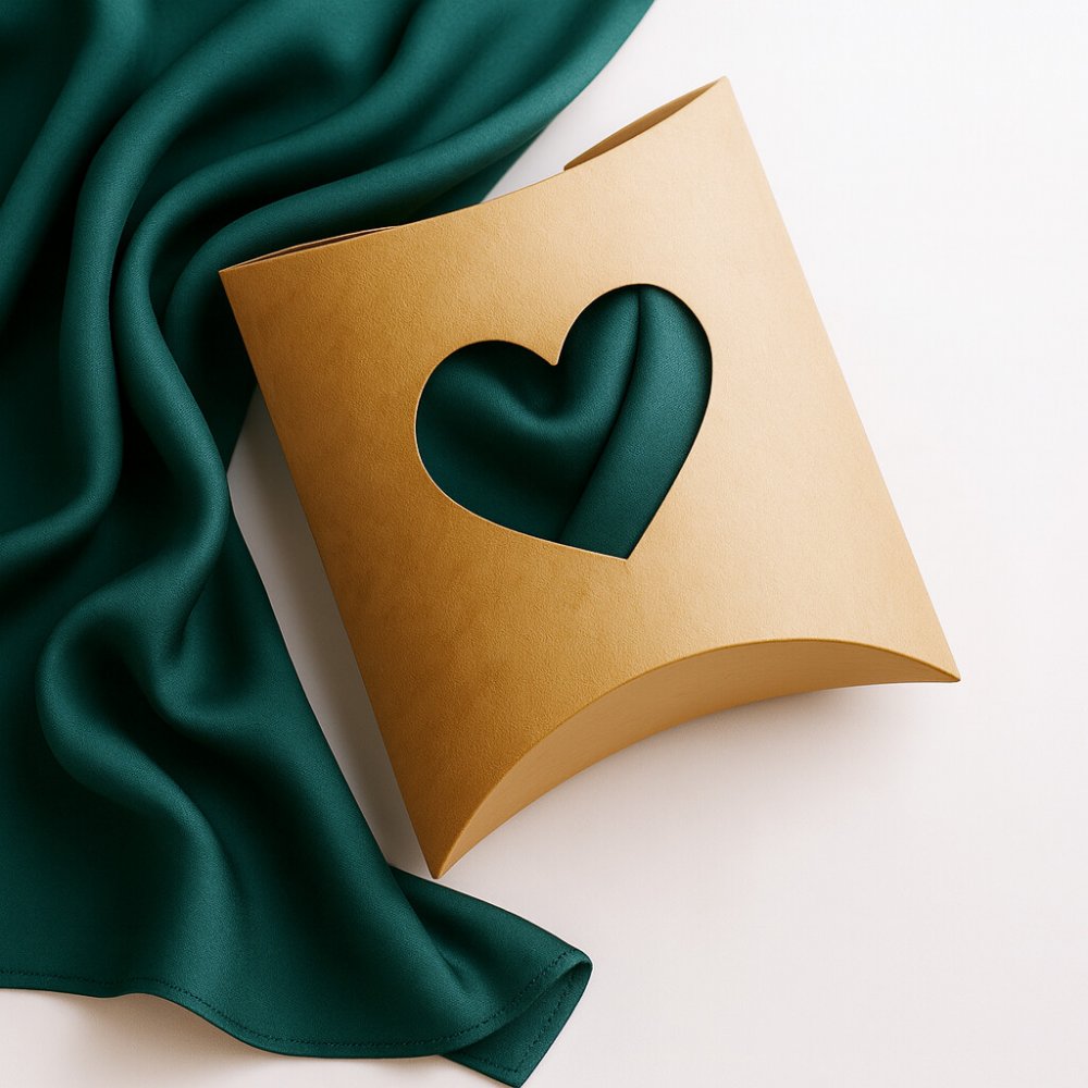 Naše kraftová krabička ve tvaru polštářku s romantickým výřezem srdce je dokonalým způsobem, jak stylově zabalit malé dárky, přírodní kosmetiku, šperky nebo ručně vyráběné svíčky. Díky svému designu je také perfektní pro balení jemných textilních výrobků – šátků, kapesníků, twilly stuh nebo malých doplňků. Vyrobena z kvalitního kraftového papíru, je pevná, ekologická a 100% recyklovatelná. Minimalistický vzhled podtrhne osobitost vašeho dárku.