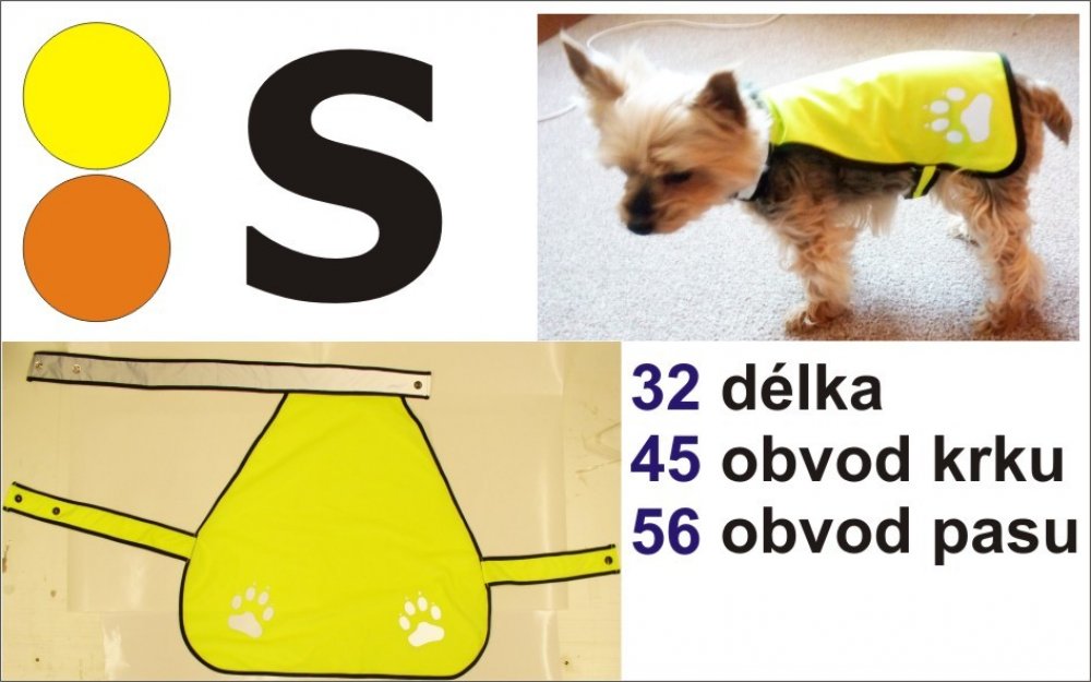 XS:25cm, hruď:30-38cm, krk:22-26cm