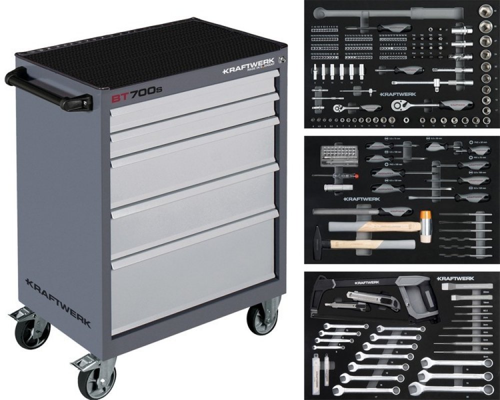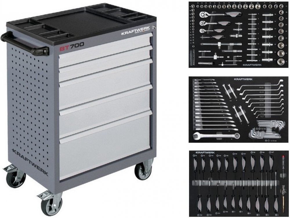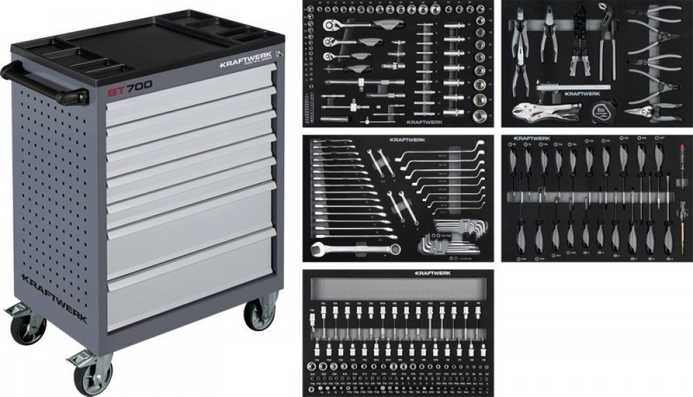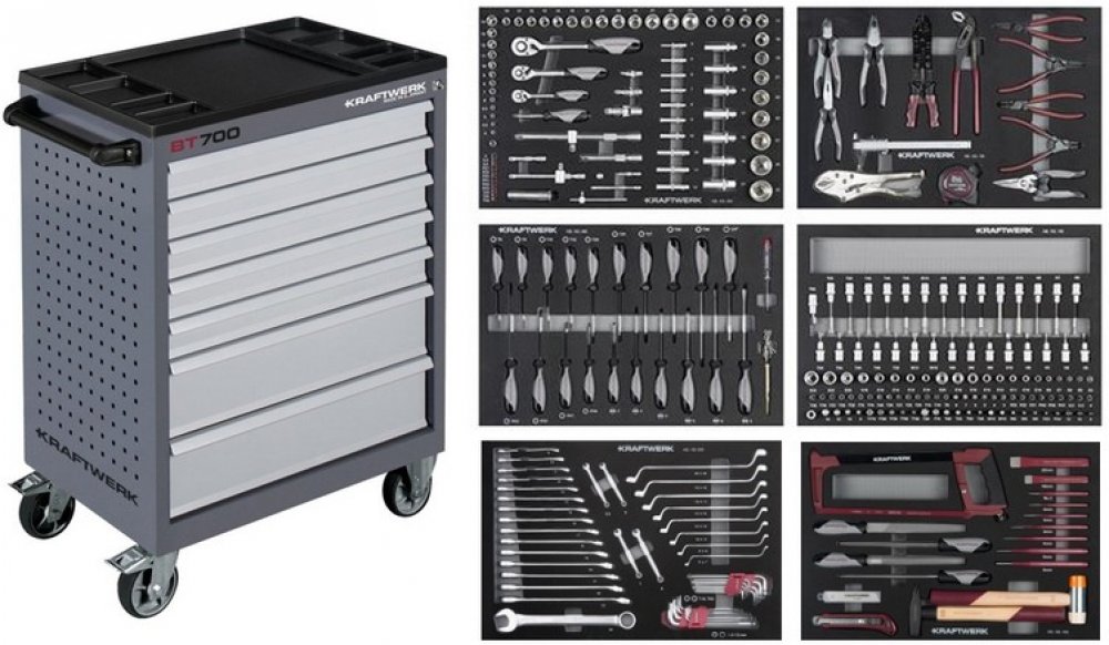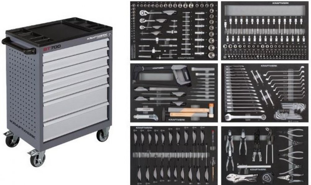- MADE IN GERMANY - 299ks nářadí uloženo v 6 speciálních vložkách z pěny (EVA) 40 x 60 cm - klíče očkoploché: 5.5 - 24mm, trháky, Inbus s kuličkou: 1.5 - 10mm - šroubováky ploché, PH, Torx, elektro tester - kleště kombinované, štípací,