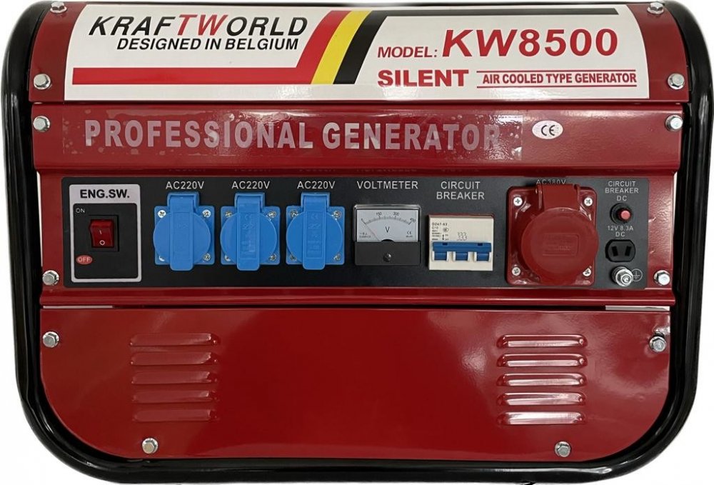 Přenosný třífázový generátor je navržen tak, aby generoval střídavý proud 220V / 380V s použitím čtyřtaktního spalovacího motoru o objemu 163 cm3 s výkonem 5,5 HP.
