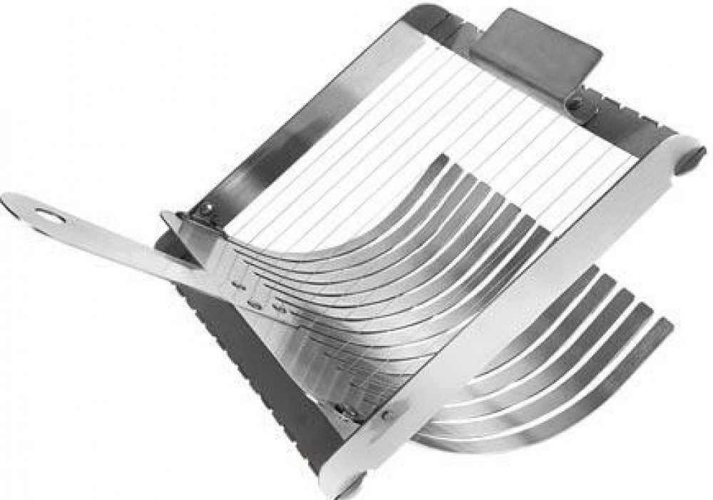 Nerezový kráječ na knedlíky Vám pomůže najednou nakrájet až 15 stejných plátků kynutých i bramborových knedlíků silných cca 1,4 cm.