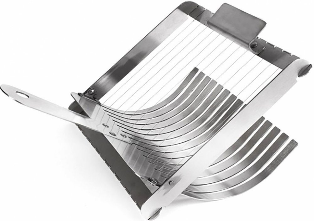 Nerezový kráječ na knedlíky Vám pomůže najednou nakrájet až 15 stejných plátků kynutých i bramborových knedlíků silných cca 1,4 cm. Rukojeť s očkem na zavěšení. Nerezové krájecí struny. Možnost mytí v myčce. Rozměry: šířka cca 21 cm.