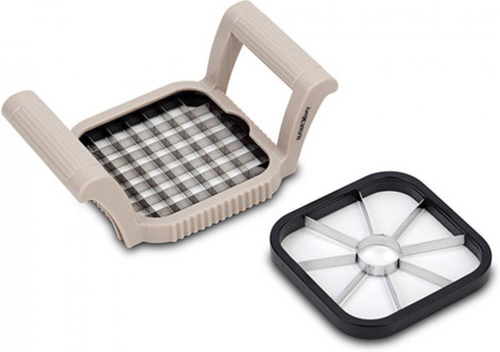 Je nezbytným pomocníkem v kuchyni, zvláště když spěcháte nebo chcete dosáhnout působivého výsledku vaření. Vytvářejte saláty, polévky, dušené maso nakrájením cibule, žampionů, okurek, mrkve, brambor, rajčat, sýra. Vychutnejte si různé dezerty na bázi jablka, hrušky, banánu nebo jahody! Čepele jsou vyrobeny z nerezové oceli , vhodné pro styk s potravinami. Ergonomické, protiskluzové rukojeti zajišťují bezpečné a pohodlné používání a zabraňují kontaktu prstů s ostrými