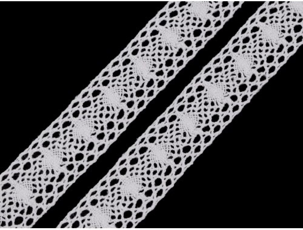 p Bavlněná paličkovaná krajka je vhodná na ozdobení lemů ubrusů, deček, polštářů, oděvů i lidových krojů. Oblíbená je také na výrobu lapačů snů. br / Doporučujeme ji žehlit přes tkaninu. br / Vlivem technologických postupů (barvení, bělení, sušení) se může šíře krajek lišit o ±6 %. br / br / Šíře: 33 mm br / Cena je za jeden metr. /p