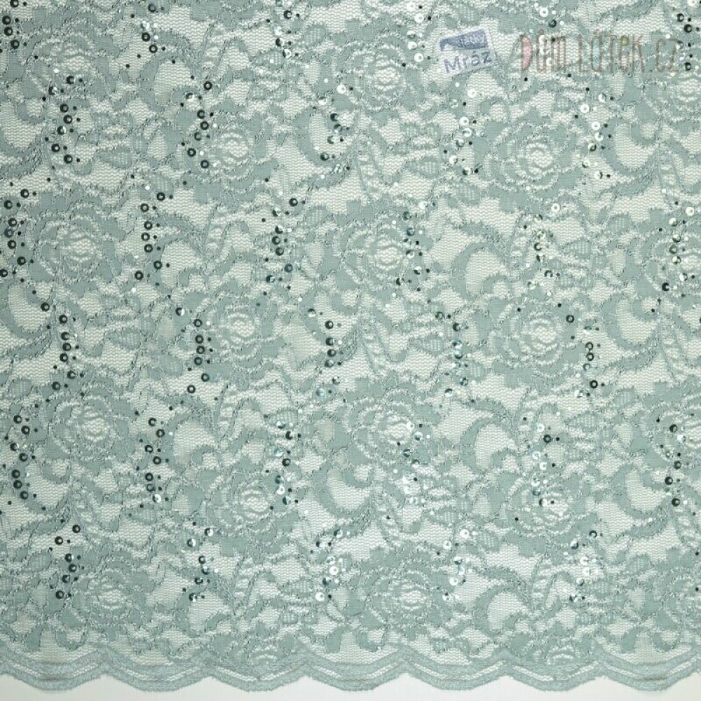 Krajka má obloučkovou borduru po obou stranách šíře a je zdobena nalepenými lesklými kolečky a kroužky.