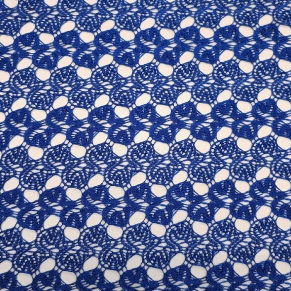 Královsky modrá vzorovaná krajka. Složení krajky 100% polyester. Šířka metráže 150 cm. Krajkovina se používá k výrobě dámských slavnostních oděvů. Krajky se rovněž využívají ke zdobení dámského prádla a oděvů.
