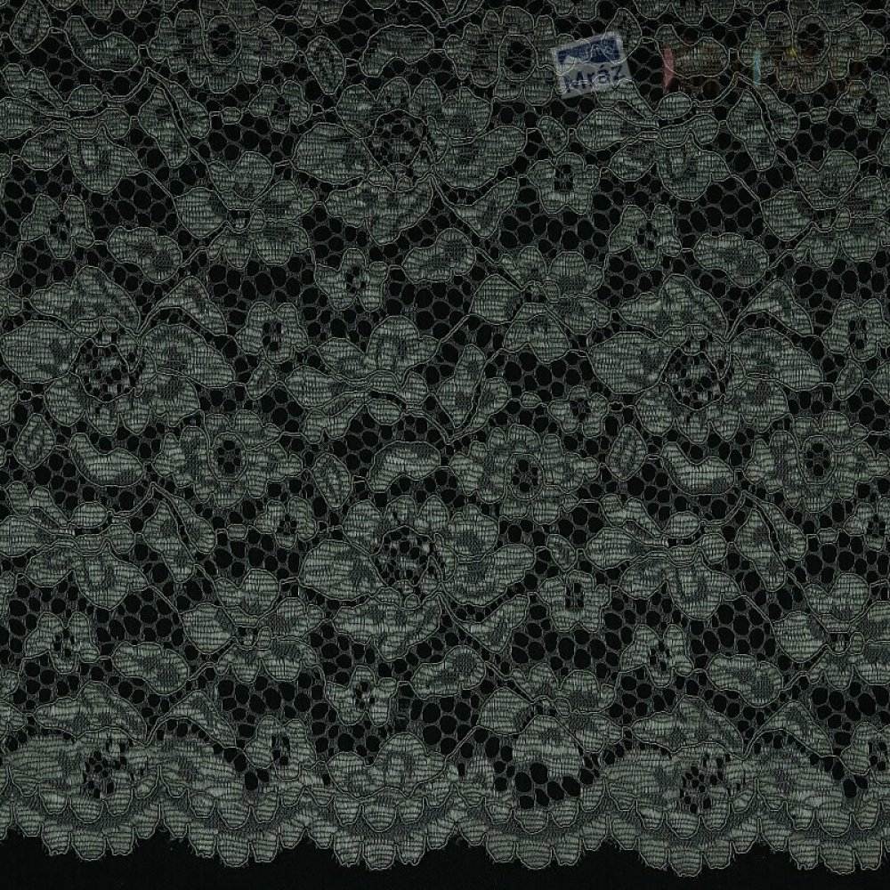 Metrážová květinová krajka s ozdobnou bordurou po obou stranách šíře látky. Krajka je pevná a nepruží, je vhodná na svrchní tričko, nebo top, na svrchní vrstvu podšitých šatů, nebo sukní, nebo jako krajková vsadka všude tam, kde chcete oživit svůj módní kousek.
