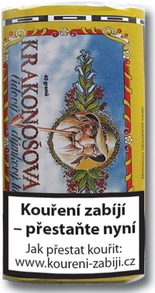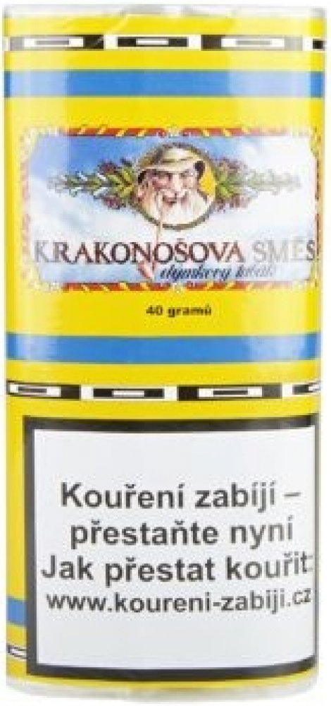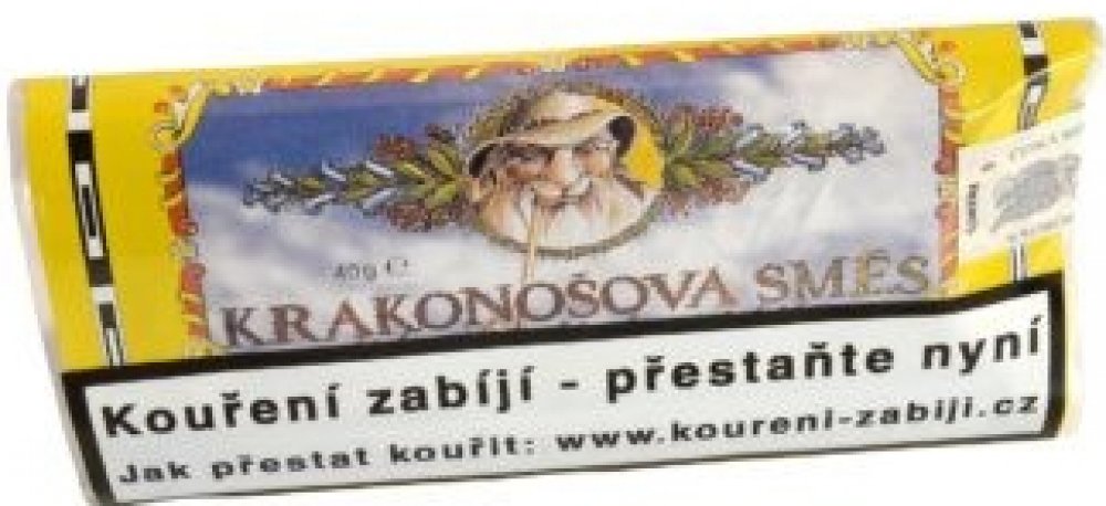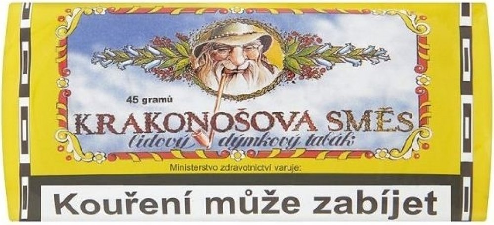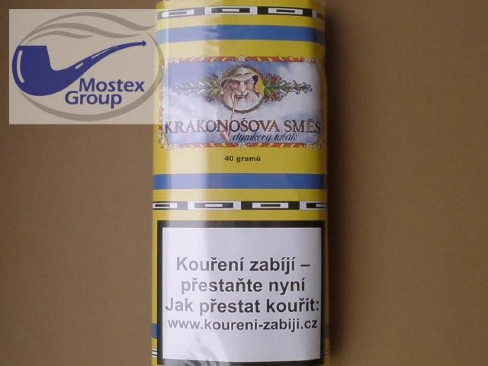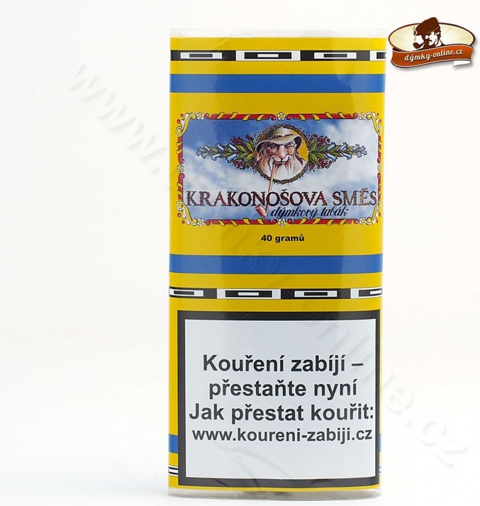 Dýmkový tabák Krakonošova směs. Nejprodávanější tabák oblíbený pro svoji jemnost a chuť. V této směsi najdeme chutě Virginských a Burley tabáků, ke kterým jsou přidány výtažky z bylin. Krakonošova směs je vhodnou volbou pro každodenní kouření. Balení pouch 40g.