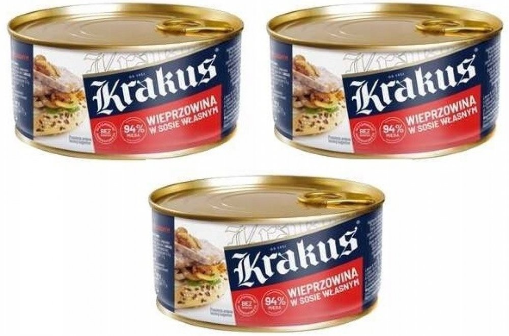 3X KONZERVA KRAKUS VEPŘOVÉ MASO VE VLASTNÍ ŠŤÁVĚ 300 G