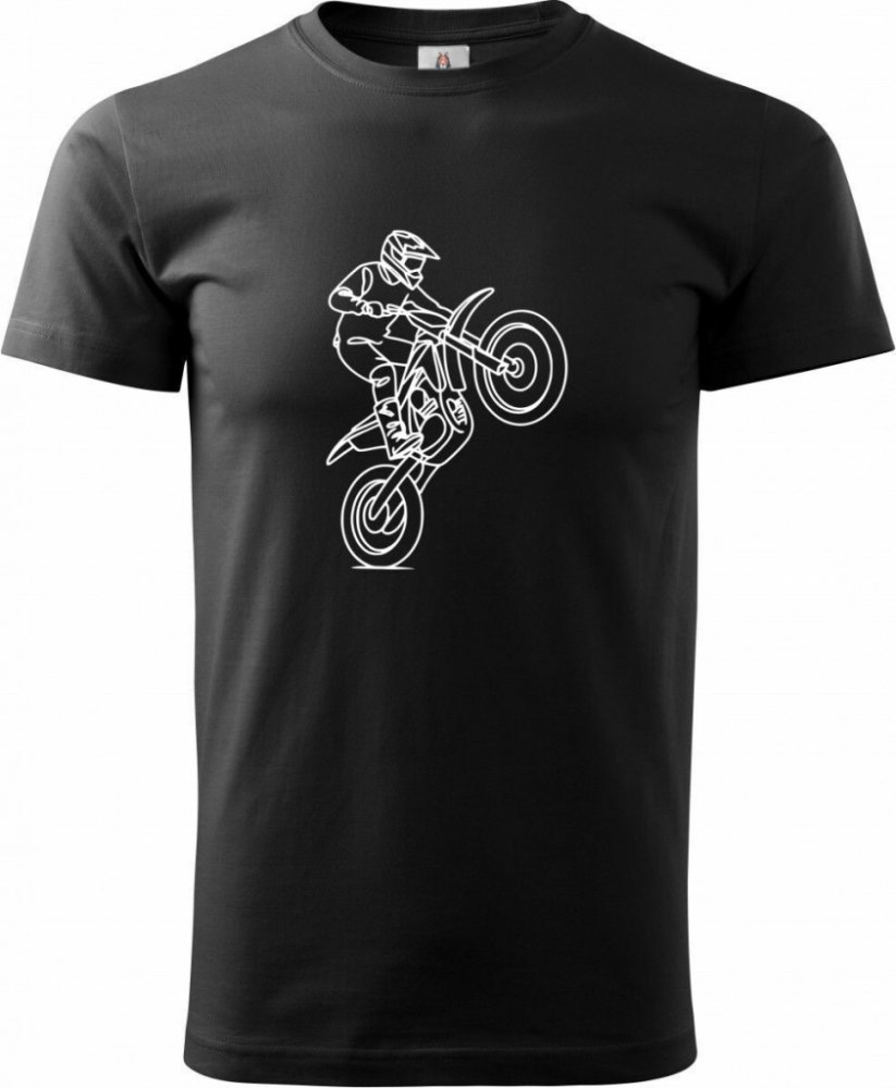 Král kolečka, bílý tisk. Už žádné stání na obou. Tohle je elegantní, čistá linka zachycující jezdce v nejlepším provedení "wheelie". Ukážeš, že tvoje dovednosti mluví za všechno. Minimalistický styl pro maximální akci!