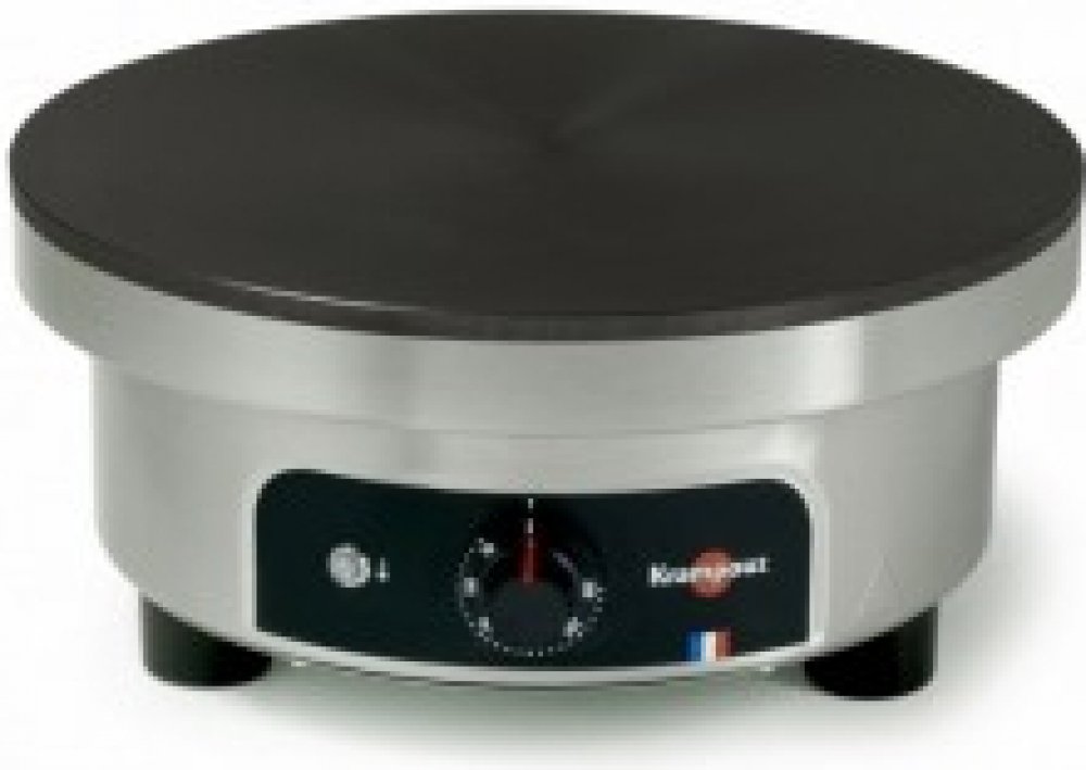 Elektrická plotna na crepes CTRO4 francouzského výrobce Krampouz je náhradou za starý model CEBIA4 . Masivní litinová drážkovaná plotna průměru 40 cm . Jednofázové napájení 230 V . Příkon palačinkovače 3,6 kW . Modelová řada Confort se zapuštěnou plotnou. Ochrana proti zatékání oleje a těsta dovnitř plotny. 3 keramické topn
