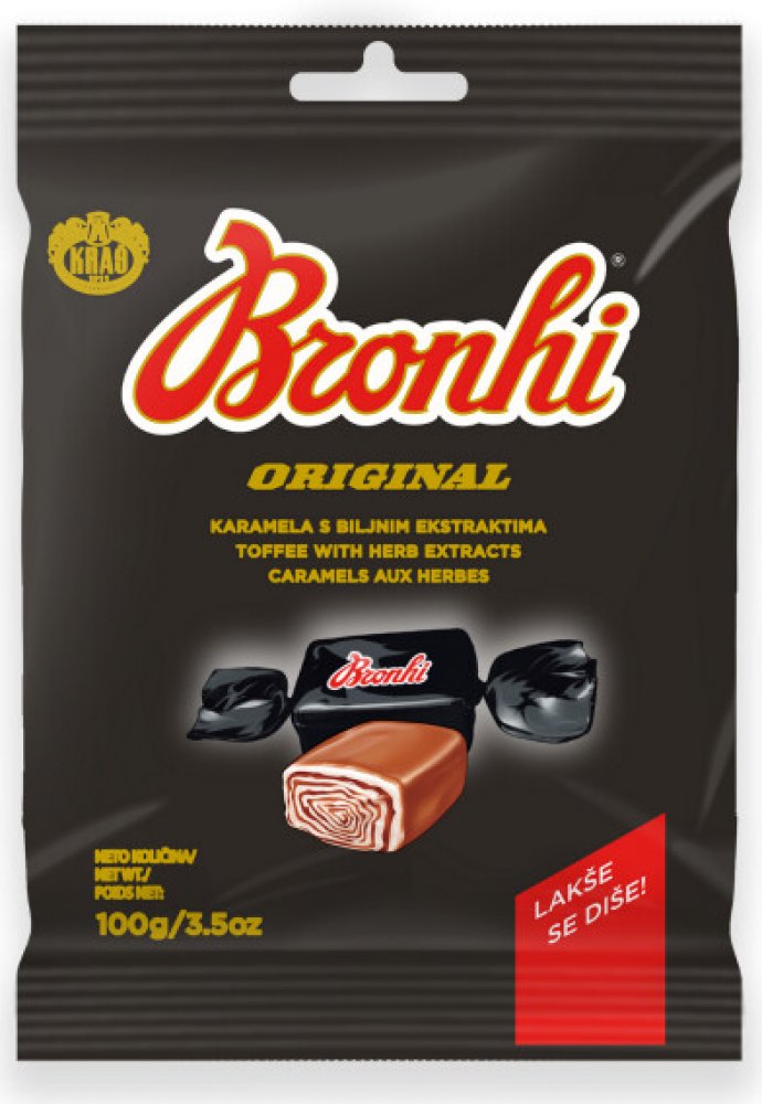Kraš Bronhi bonbony 100 g jsou originální karamelové bonbony s příchutí lékořice. Tradiční receptura značky Kraš zaručuje jemnou strukturu a plnou chuť.