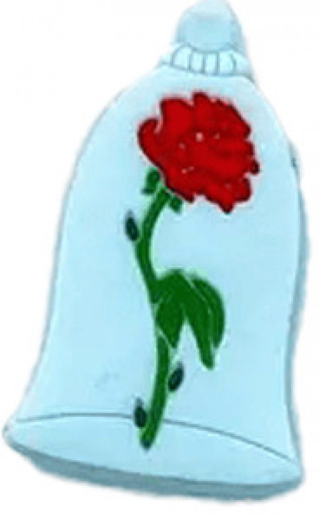 Silikonový korálek ve tvaru růže z Krásky a zvíře o rozměrech 3,2x 2 cm.