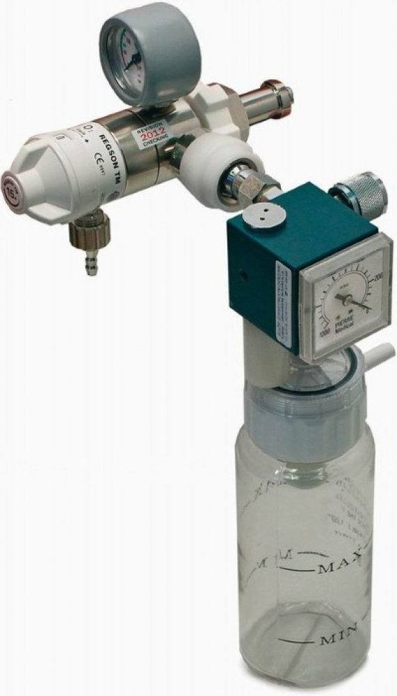 KYSLÍKOVÉ ZAŘÍZENÍ KOMBINOVANÉ se skládá z redukčního ventilu se dvěma výstupy + odsávačky vzduchové / kyslíkové. Kyslíkové zařízení se používá k odsávání hlenů, zvratků a sekretu. Druhý, nezávislý výstup s regulátorem slouží k připojení ambuvaku a podpoření resuscitace kyslíkem O2. Používá se na oddělení JIP a LDN.