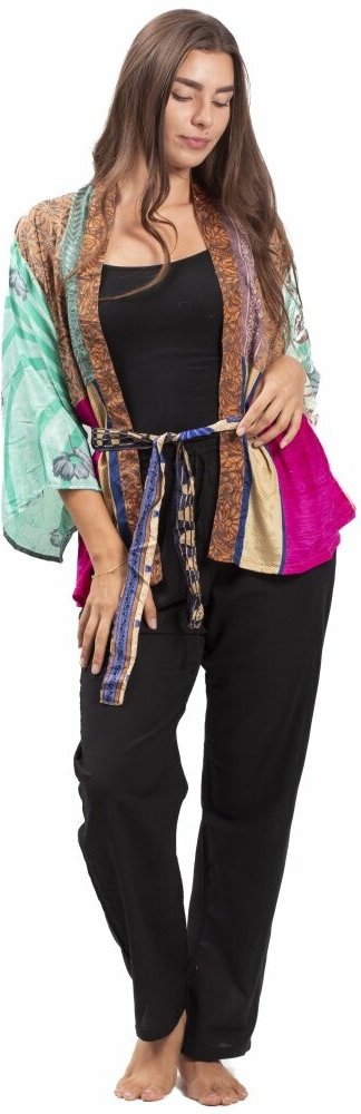 Toto kimono v pestrých barvách můžete nosit jako dlouhé kimonové šaty, svrchní oděv přes plavky nebo doma, jako župan. Každý kus je jiný, originalita zaručena:)