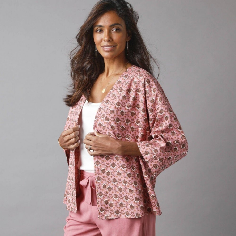Krátké kimono s potiskem růžové dřevo
