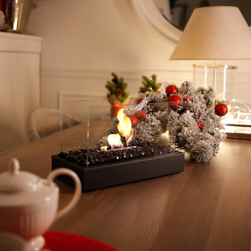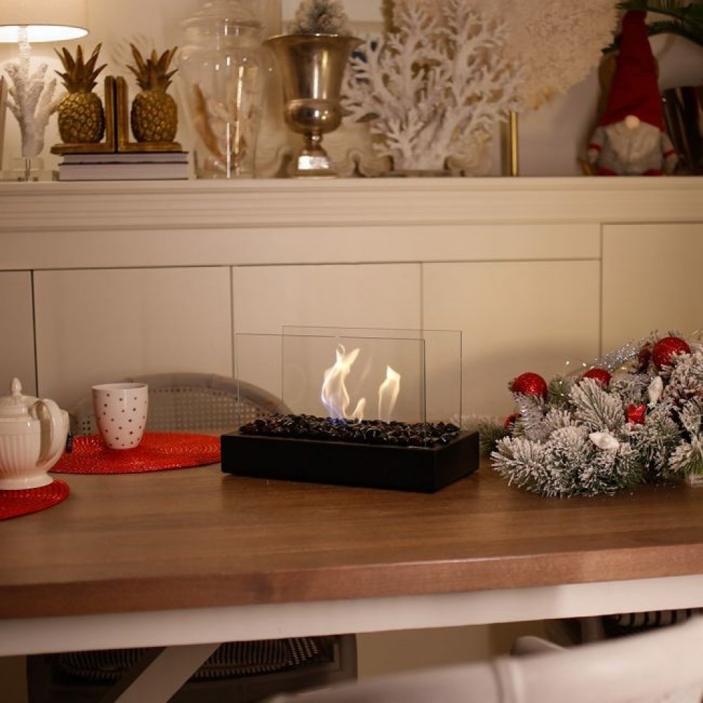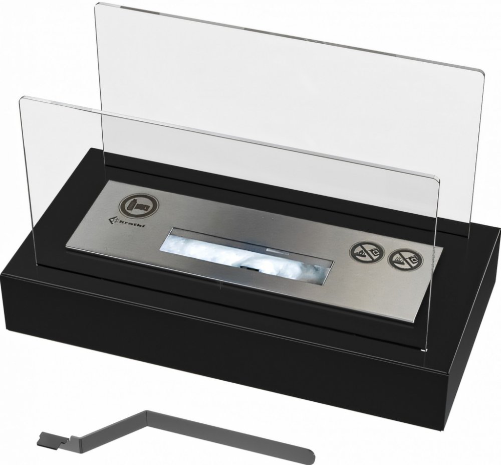 Stolní biokrby mají obrovskou výhodu v tom, že jej můžete kdykoliv kamkoliv přenést. Za příznivých povětrnostních podmínek se Váš biokrb může stát i chloubou Vaši venkovní terasy a zahrady během dlouhých zimních odpolední. Jednoduché, elegantní tvary a materiál, ze kterého je bio krb vyroben, přispívají k vytvoření příjemné atmosféry a kontakt s ohněm. Stabilní konstrukce bio krbu zabezpečuje bezpečnost a poskytuje ochranu před nebezpečím. Biokrb je vyroben z černého plechu pokrytý práškovou barvou. Nerezová nádoba na biolíh je vybavena absorpční vložkou. Jedná se o nově použitý materiál pro bio krby. Tato vložka zaručuje výrazné snížení spotřeby biokrbu a chrání částečně biolíh před rozlitím a to i v případě převrácení.