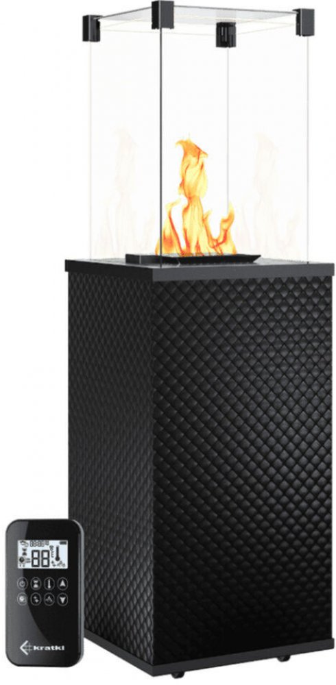 Import » Plynový ohřívač PATIO sklo / prošívané černé dálkové ovládání / automatika Plynové ohřívače » Ohřívače na propan-butan » KRATKI PATIO sklo / černý rastr - automatika