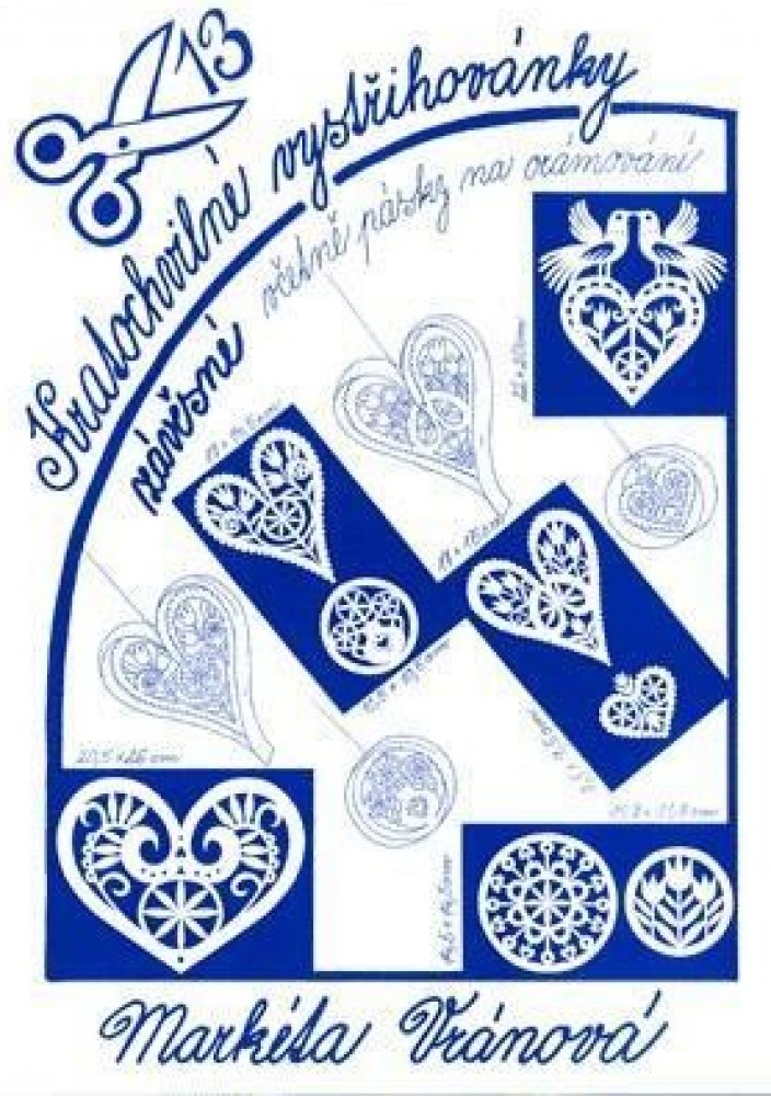 Vyrobte si novou dekoraci netradičně - vystřihováním, výsledné vystřihovánky mohou být využity k výzdobě oken i jiných míst Kratochvilné vystřihovánky mají široké využití k výrobě různých dekorací. Vystřižené obrázky můžete zavěsit do oken, na dveře, stěnu nebo do prostoru v jednoduchém rámečku. Obrázky připevněné ke špejli poslouží jako zápichy do květináčů. Jako součást přáníček potěší Vaše blízké. Nabízíme je v mnoha tématických souborech. Na titulní straně každého souboru jsou vyobrazeny vystřihovánky s uvedenými rozměry, které najdete v aktuální velikosti uvnitř. Z vložených listů můžete podle popisu (na zadní straně) hned začít vystřihovat. Některé soubory obsahují další zdobné prvky (barevný papír, zlatou fólii, pásky na zhotovení rámečků pro závěsné vystřihovánky, průsvitný transparentní papír). Obtížnost vystřihování je od souboru číslo 31 značena vpravo na obálce symbolem nůžtiček: jedny nůžtičky - lehké, dvoje nůžtičky - střední, troje nůžtičky - pro pokročilé. Většina vystřihovánek je v obtížnosti střední. Tento soubor obsahuje: Srdce s ptáčky – 22 x 20 cm Srdce – 20,5 x 26 cm Srdce do rámečku – dvakrát 17 x 15 cm Malé srdíčko do rámečku – 8,5 x 9,5 cm Kytička do rámečku – 10,5 x 10,5 cm Kruhová dečka – 14,5 x 14,5 cm Tulipánky – 11,7 x 11,7 cm Soubor doplňuje popis a pásky na zhotovení rámečků pro závěsné vystřihovánky (dvě srdíčka a dva kroužky).