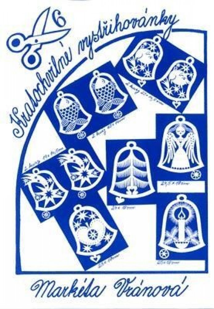 Nové dekorace vystřihováním - vystřihovánky mohou být využity k výzdobě oken i jiných míst Kratochvilné vystřihovánky mají široké využití k výrobě různých dekorací. Vystřižené obrázky můžete zavěsit do oken, na dveře, stěnu nebo do prostoru v jednoduchém rámečku. Obrázky připevněné ke špejli poslouží jako zápichy do květináčů. Jako součást přáníček potěší Vaše blízké. Kratochvilné vystřihovánky mají široké využití k výrobě různých dekorací. Vystřižené obrázky můžete zavěsit do oken, na dveře, stěnu nebo do prostoru v jednoduchém rámečku. Obrázky připevněné ke špejli poslouží jako zápichy do květináčů. Jako součást přáníček potěší Vaše blízké. Nabízíme je v mnoha tématických souborech. Na titulní straně každého souboru jsou vyobrazeny vystřihovánky s uvedenými rozměry, které najdete v aktuální velikosti uvnitř. Z vložených listů můžete podle popisu (na zadní straně) hned začít vystřihovat. Některé soubory obsahují další zdobné prvky (barevný papír, zlatou fólii, pásky na zhotovení rámečků pro závěsné vystřihovánky, průsvitný transparentní papír). Obtížnost vystřihování je od souboru číslo 31 značena vpravo na obálce symbolem nůžtiček: jedny nůžtičky - lehké, dvoje nůžtičky - střední, troje nůžtičky - pro pokročilé. Soubor obsahuje:Zvonek s kapříkem – dvakrát 20 x 14 cm Zvonek se štědrovečerním prasátkem – dvakrát 20 x 14,5 cm Zvonek s kometou – dvakrát 19 x 14,5 cm Zvonek se stromečkem – 24 x 18 cm Zvonek s andělem – 24,5 x 18 cm Zvonek s rozkrojeným jablíčkem – 23 x 18 cm Zvonek se svíčkou – 25 x 18 cm