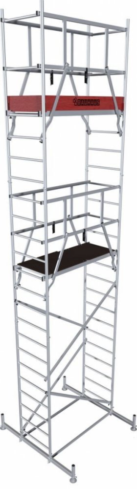 Montážní lešení AH 7 od značky Krause můžete používat jako stacionární i pojízdné lešení. Vertikální rámy umožňují posun po stojací traverze, čímž se flexibilně přizpůsobí pracovním podmínkám. Protiskluzové, profilované příčky zaručují bezpečný výstup uvnitř lešení. Plošina o délce 1,50 m a šířce 0,60 m je odolná vůči nepřízni počasí a je protiskluzová, což poskytuje dostatečný prostor a bezpečí při práci. Volitelně jsou jako zvláštní příslušenství k dostání pojezdová kola, vzpěry a vyvažovací závaží. Celková maximální pracovní výška je cca 7 m.