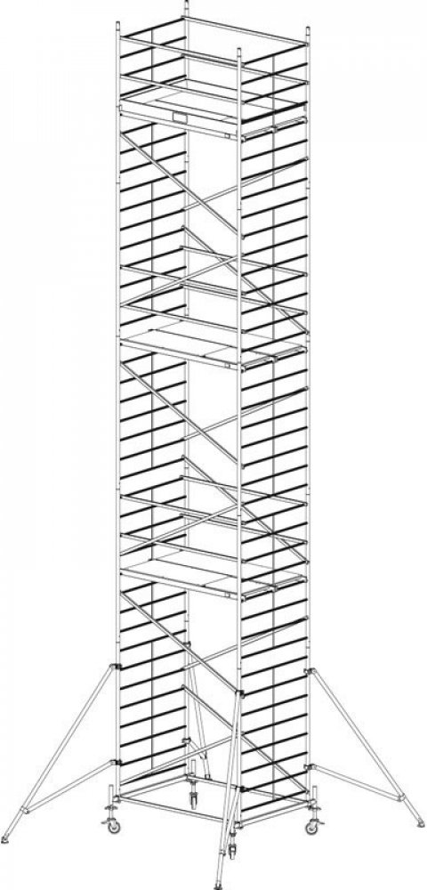 · hliníkové pojízdné lešení řady ProTec XXL je profesionální lešení, které uspokojí nejen občasné uživatele ale také profesionály, kteří lešení potřebují na každodenní práci · odpovídá normě DIN EN 1004 · maximální pracovní výška 12,3 metru · plošina o rozměrech 1,2 x 2 m - použity dvě podlážky vedle sebe · podlážku tvoří klimaticky odolná protiskluzová deska z fenolové pryskyřice · vyšší stabilita proti průhybu díky přivaření příčlí ve středu · součástí balení jsou výškově stavitelná kolečka o průměru 150 mm · snadno montovatelné stabilizátory zajišťují přídavnou stabilitu od pracovní výšky 4,30 m, součástí balení jsou až od výšky 6,3 m · bezpečný vnitřní výstup svislým rámem pomocí profilovaných protiskluzových příčlí