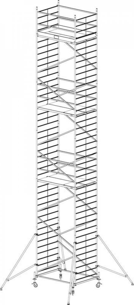 · hliníkové pojízdné lešení řady ProTec XXL je profesionální lešení, které uspokojí nejen občasné uživatele ale také profesionály, kteří lešení potřebují na každodenní práci · odpovídá normě DIN EN 1004 · maximální pracovní výška 12,3 metru · plošina o rozměrech 1,2 x 2 m - použity dvě podlážky vedle sebe · podlážku tvoří klimaticky odolná protiskluzová deska z fenolové pryskyřice · vyšší stabilita proti průhybu díky přivaření příčlí ve středu · součástí balení jsou výškově stavitelná kolečka o průměru 150 mm · snadno montovatelné stabilizátory zajišťují přídavnou stabilitu od pracovní výšky 4,30 m, součástí balení jsou až od výšky 6,3 m · bezpečný vnitřní výstup svislým rámem pomocí profilovaných protiskluzových příčlí