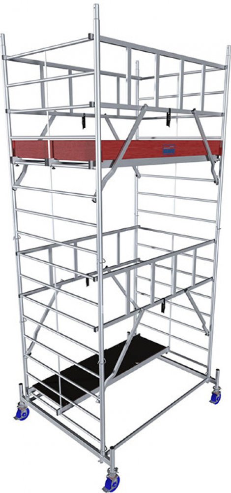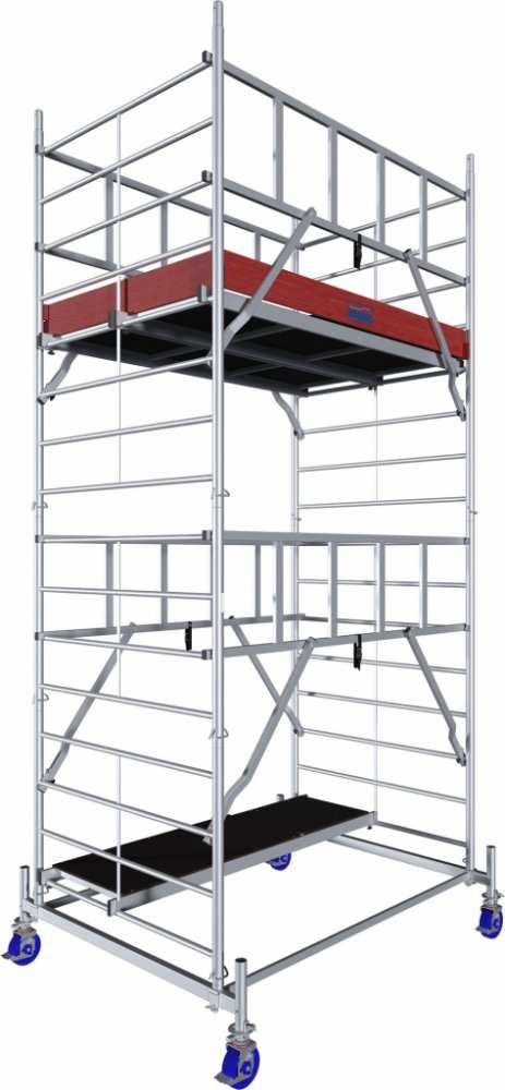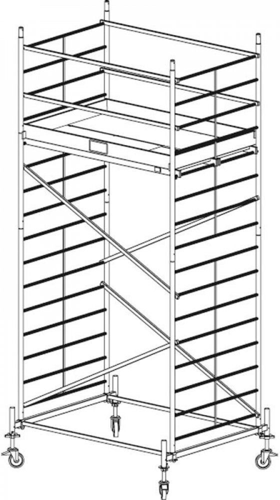 · hliníkové pojízdné lešení řady ProTec XXL je profesionální lešení, které uspokojí nejen občasné uživatele ale také profesionály, kteří lešení potřebují na každodenní práci · odpovídá normě DIN EN 1004 · maximální pracovní výška 12,3 metru · plošina o rozměrech 1,2 x 2 m - použity dvě podlážky vedle sebe · podlážku tvoří klimaticky odolná protiskluzová deska z fenolové pryskyřice · vyšší stabilita proti průhybu díky přivaření příčlí ve středu · součástí balení jsou výškově stavitelná kolečka o průměru 150 mm · snadno montovatelné stabilizátory zajišťují přídavnou stabilitu od pracovní výšky 4,30 m, součástí balení jsou až od výšky 6,3 m · bezpečný vnitřní výstup svislým rámem pomocí profilovaných protiskluzových příčlí