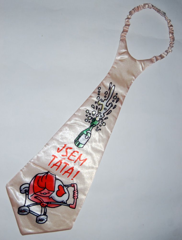 Darujte novopečenému tatínkovi slušivou kravatu s vtipným potiskem. Vždyť narození potomka je potřeba pořádně oslavit, a originální dárek se také bude hodit. Stylová kravata oznamující „Jsem táta“ je nepřehlédnutelná a budí zaslouženou pozornost okolí. Je super dárkem a bude i báječnou vzpomínkou na ten okamžik, kdy se muž stal poprvé tátou. Zapínání na suchý zip.