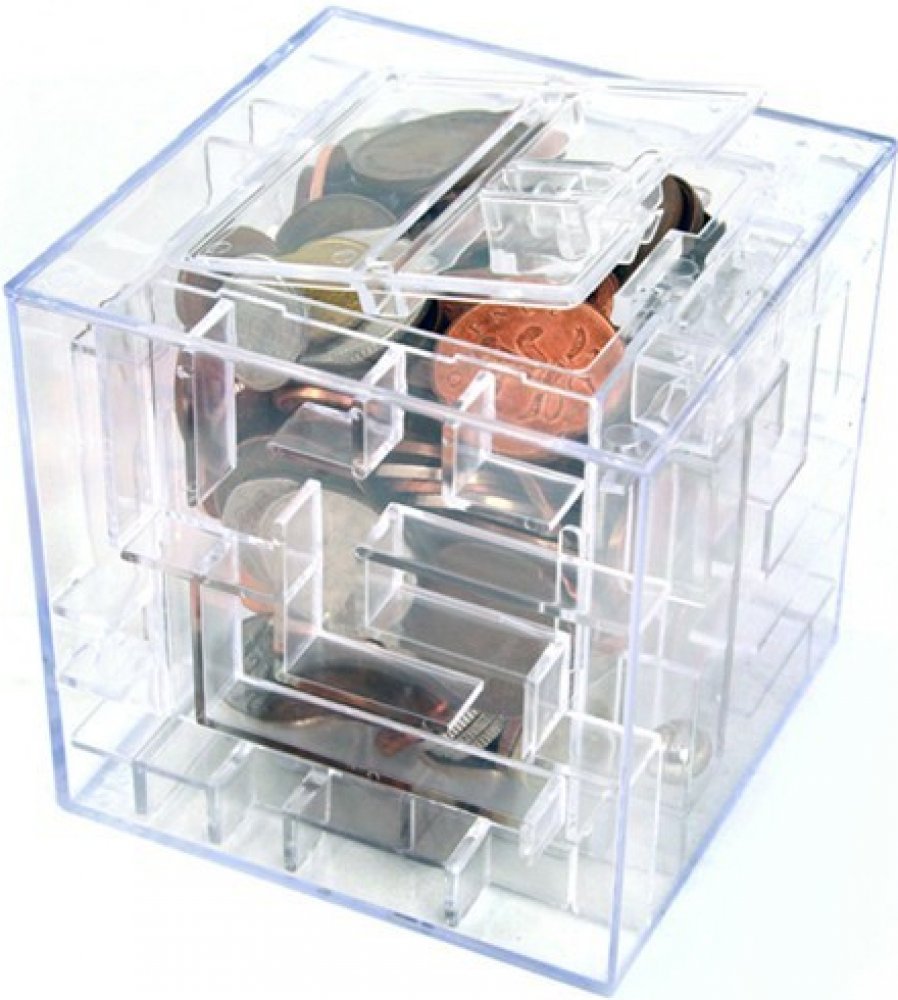 Inteligentní pokladnička je plastová průhledná krychle ve které budete mít neustále pod kontrolou své peníze.Výhodou této pokladničky je, že pokud chcete dostat peníze ven, musíte nejdříve vyřešit hlavolam. Ten spočívá v tom, že musíte dostat kuličku, která je uvnitř hlavolamu na správné místo skrz rozsáhlé 3D bludiště. Pokud není kulička na správném místě, pokladnička nejde otevřít, pokud se ovše...
