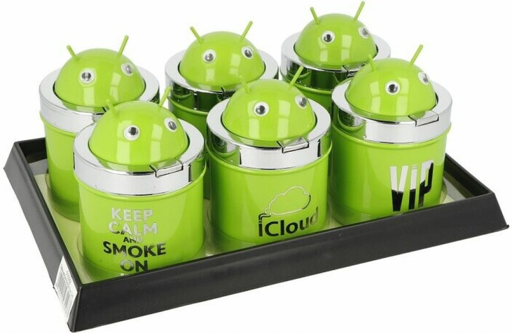 Zavírací cigaretový popelník Green Frog s odkladem. Menší kovový popelník je v lesklé zeleném provedení v kombinaci s chromovými prvky. Praktický popelník je vybavený uzavíracím víčkem ve tvaru hlavy, které se otevře po stisknutí čelního tlačítka. Díky konstrukci podobné popelníku do auta se Vám nestane, že budete mít popel okolo popelníku. Uvnitř najdete místo pro odložení jedné cigarety a mřížku...